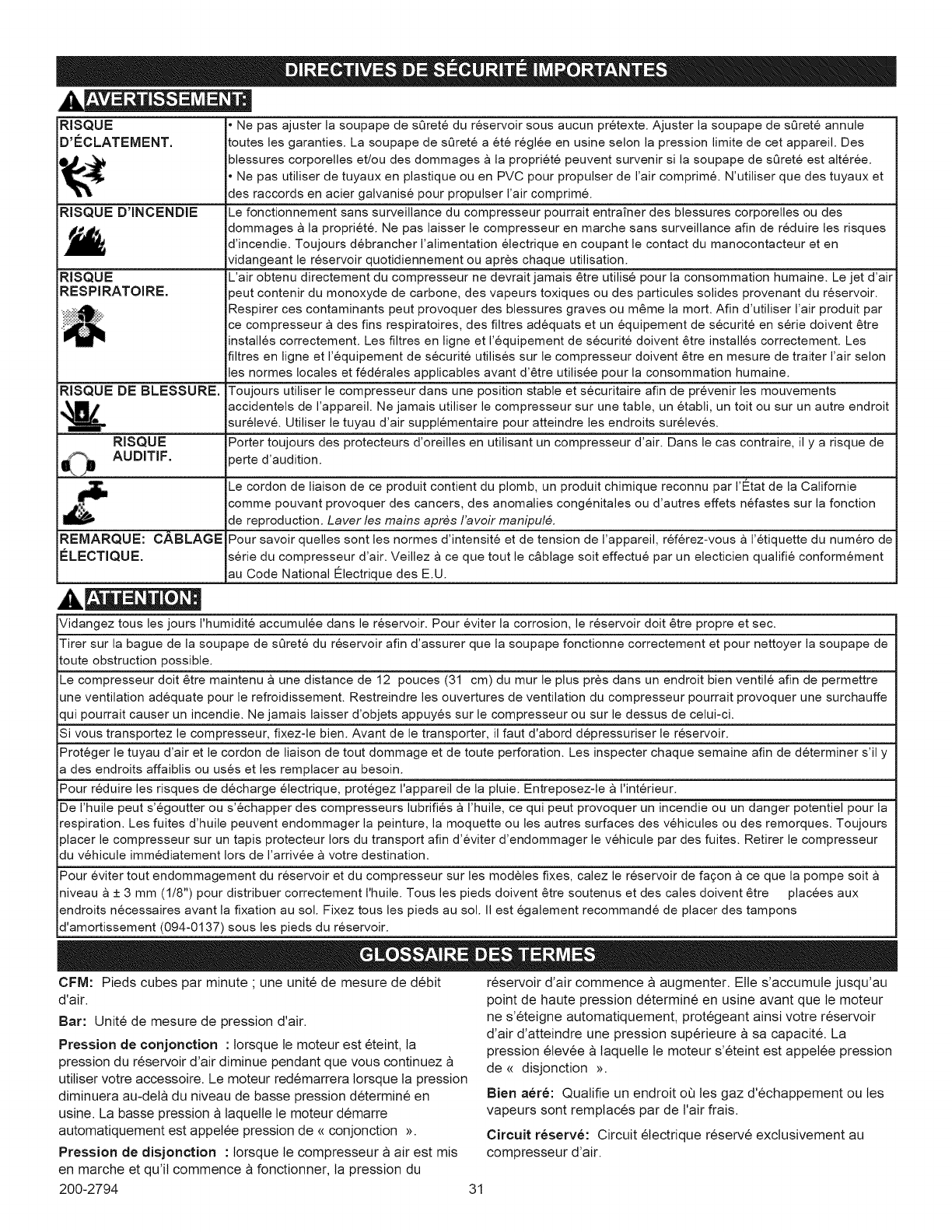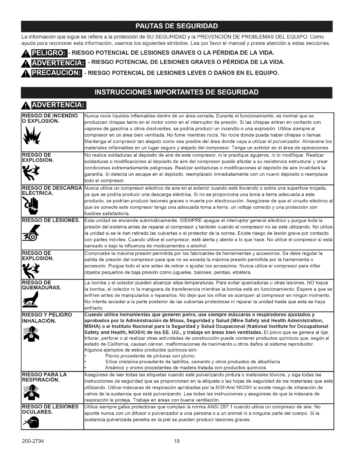 the compressor while tired or under the influence of drugs or alcohol.