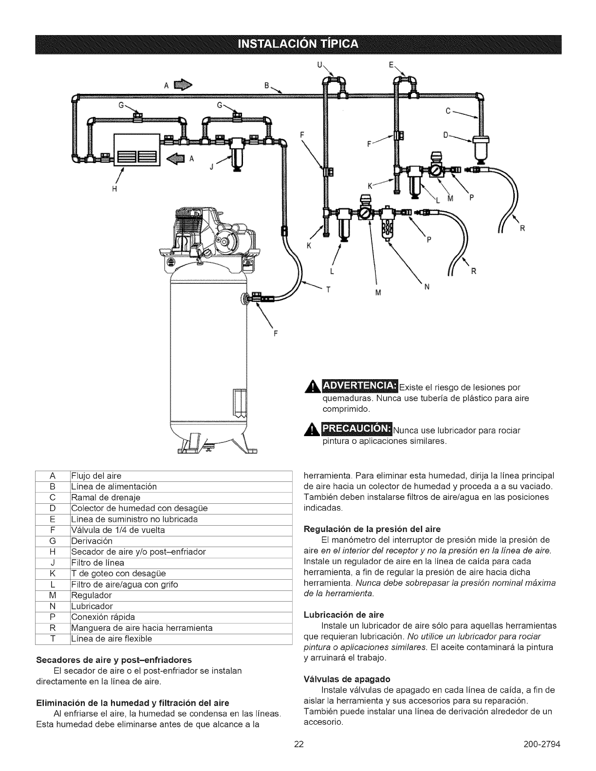 secure location away from compressor. Equip the area of operation with a fire extinguisher.