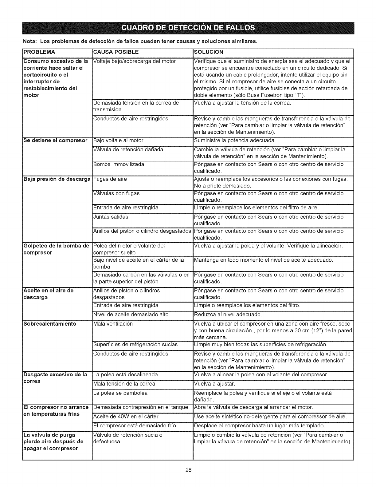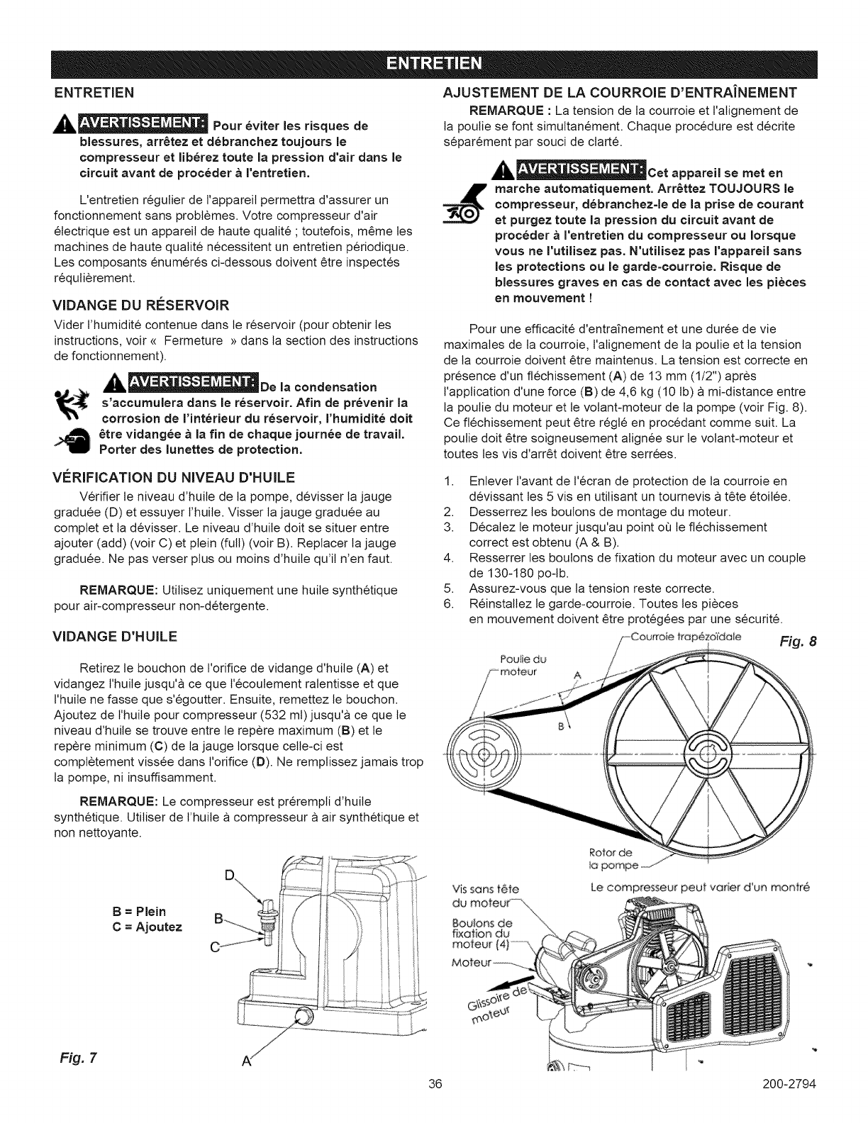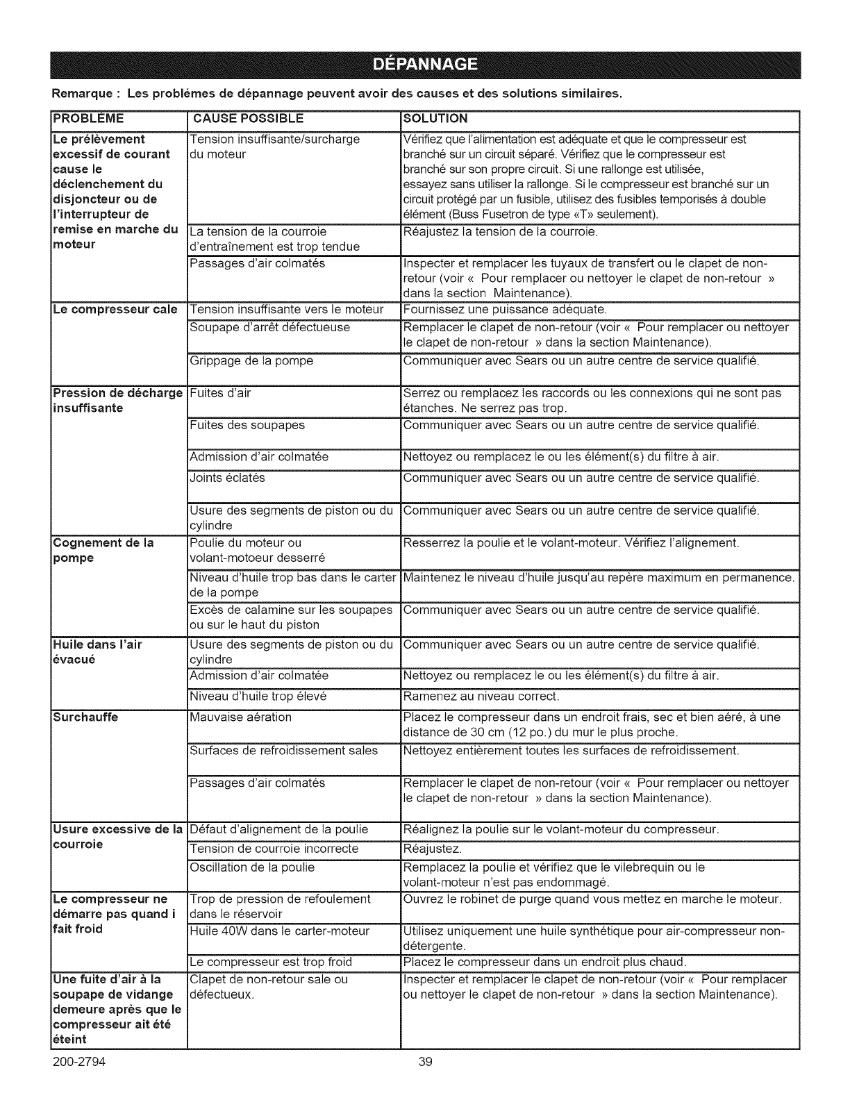 Usure des segments de piston ou du Communiquer avec Sears ou un autre centre de service qualifi&