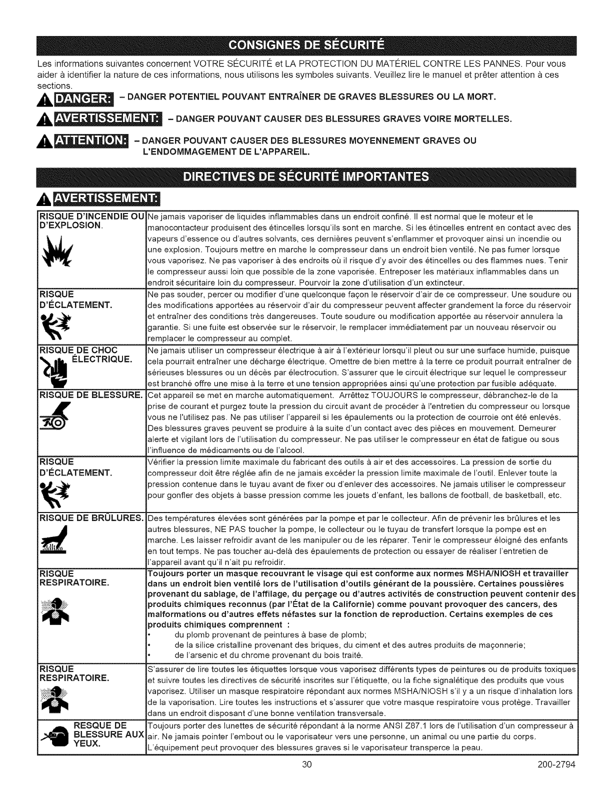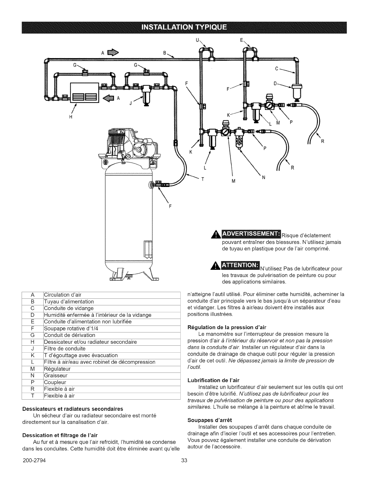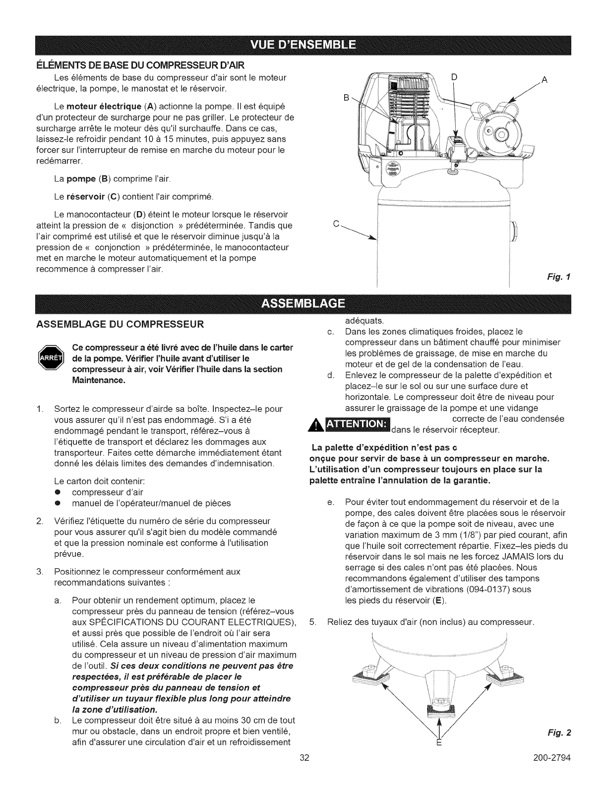 Surchauffe Mauvaise aeration Ptacez le compresseur dans un endroit frais, sec et bien aer6, a une