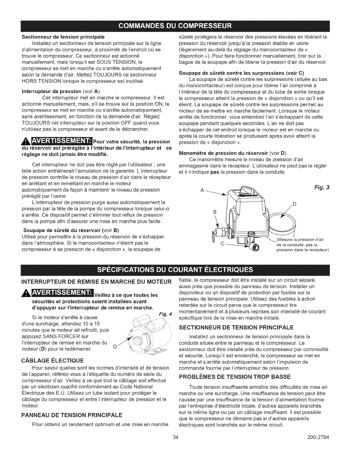 Veriflez que l'alimentation est adequate et que te compresseur est
