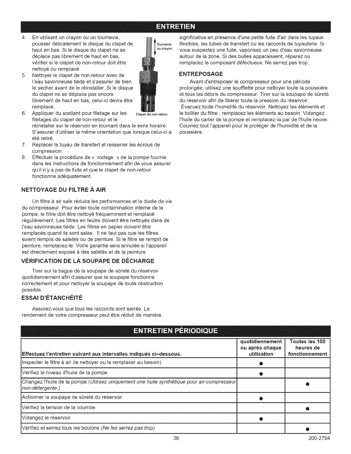 te clapet de non-retour >>dans la section Maintenance).