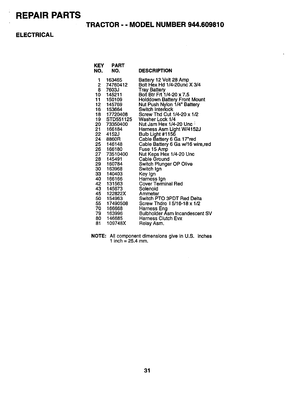WHEN ORDERING REPAIR PARTS, ALWAYS GWE THE FOLLOWING