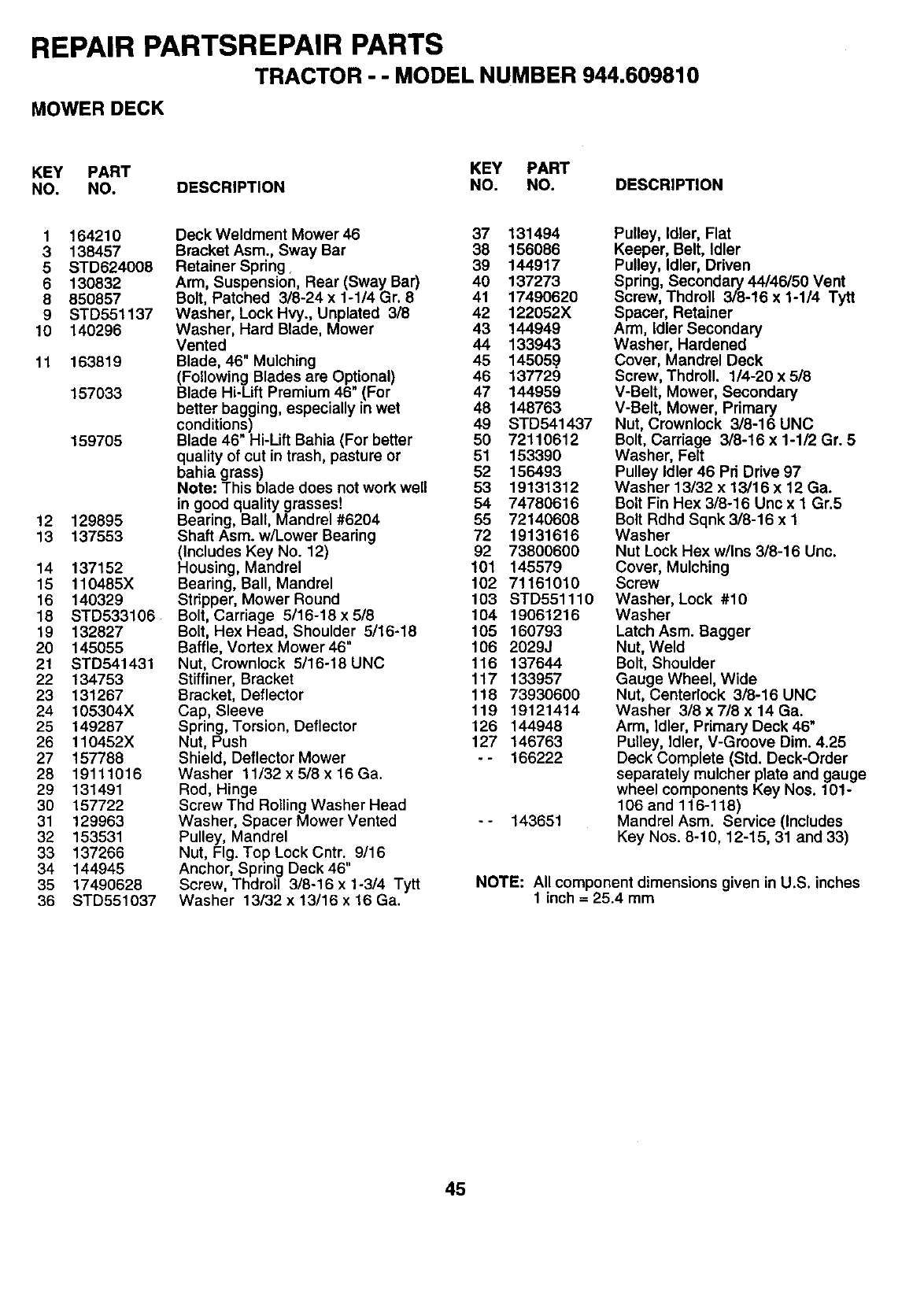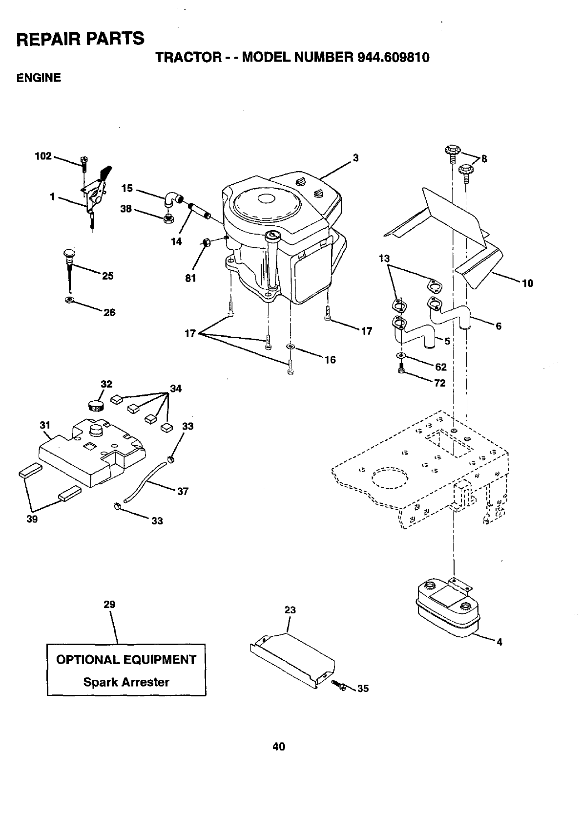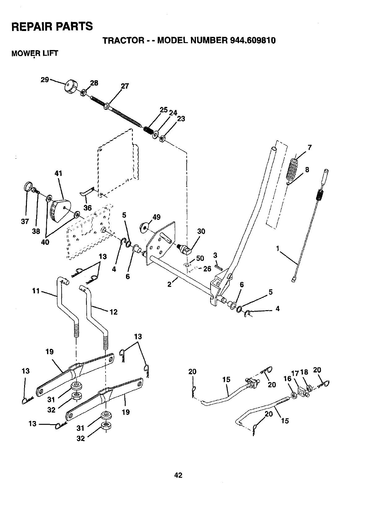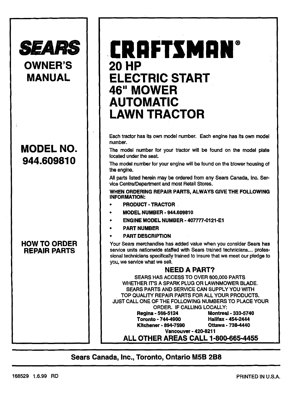 User Manual: Craftsman 944609810 944609810 CRAFTSMAN LAWN TRACTOR - Manuals and Guides View the owners manual for your CRAFTSMAN LAWN TRACTOR #944609810. Home:Lawn & Garden Parts:Craftsman Parts:Craftsman LAWN TRACTOR Manual