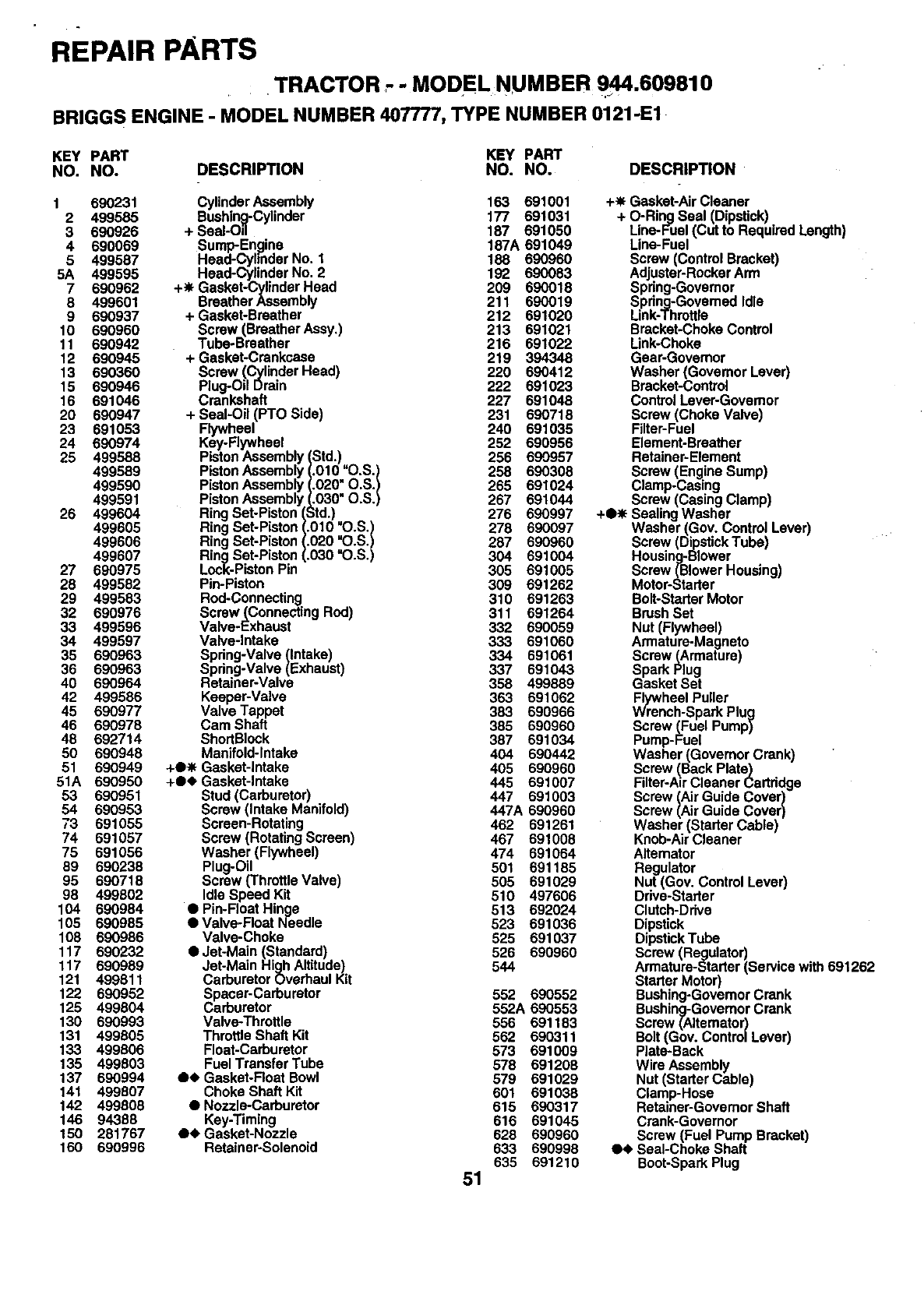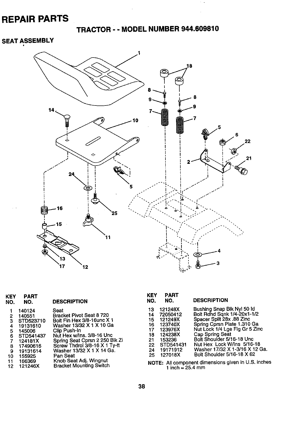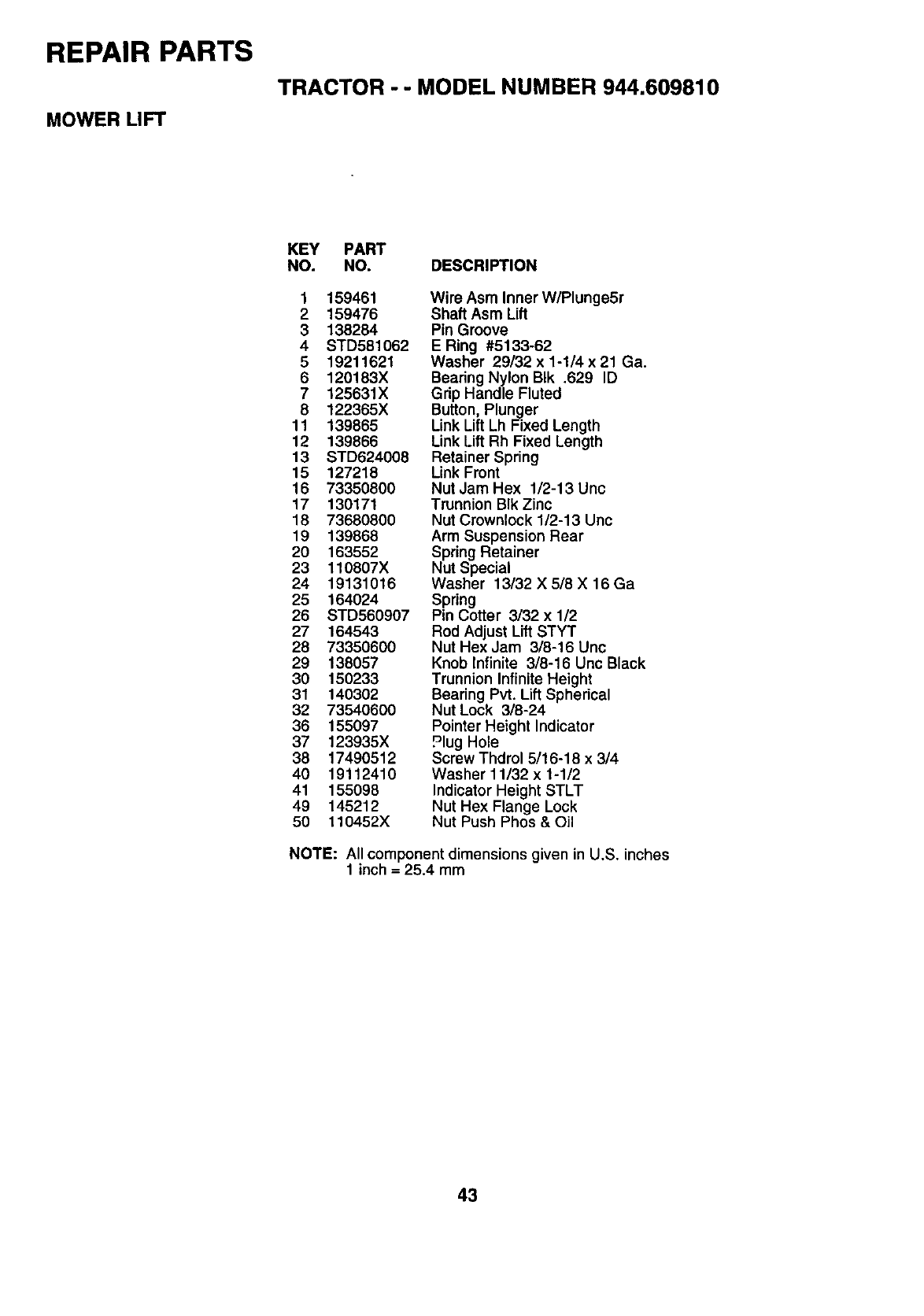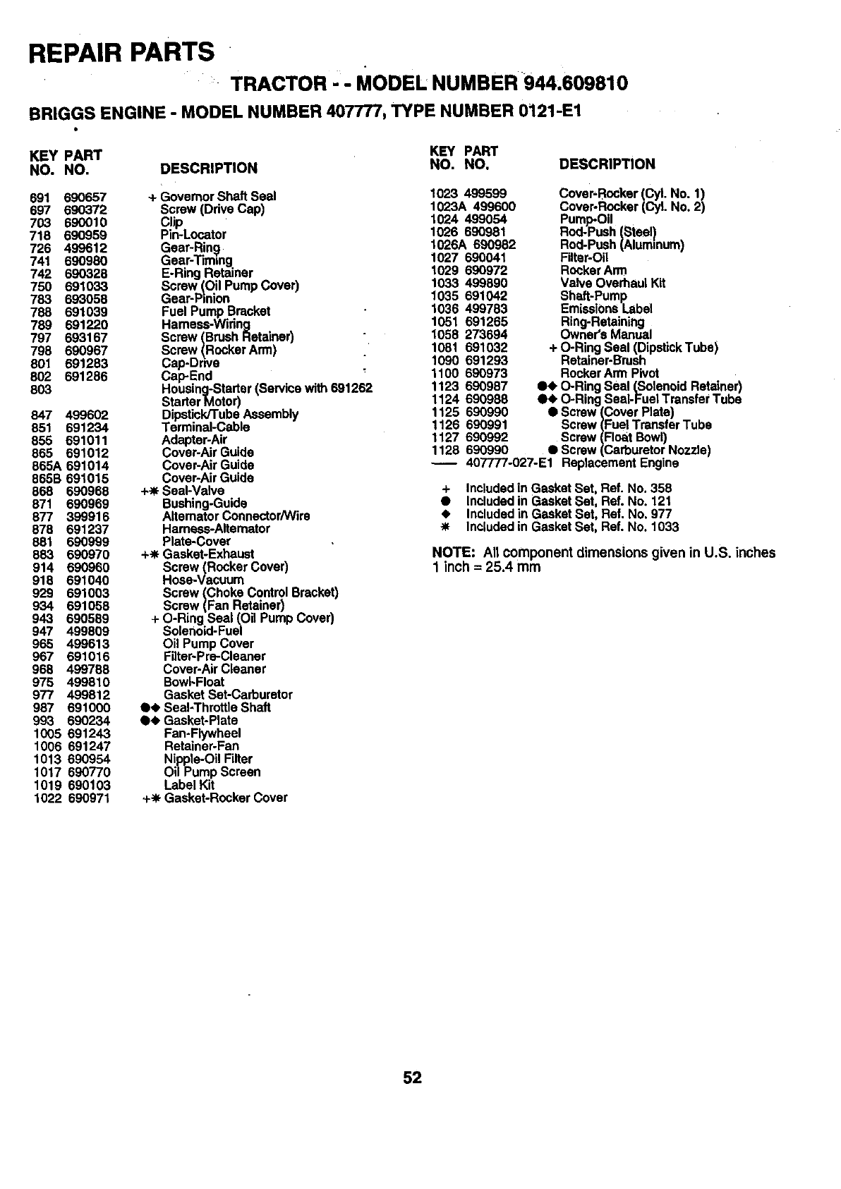 User Manual: Craftsman 944609810 944609810 CRAFTSMAN LAWN TRACTOR - Manuals and Guides View the owners manual for your CRAFTSMAN LAWN TRACTOR #944609810. Home:Lawn & Garden Parts:Craftsman Parts:Craftsman LAWN TRACTOR Manual