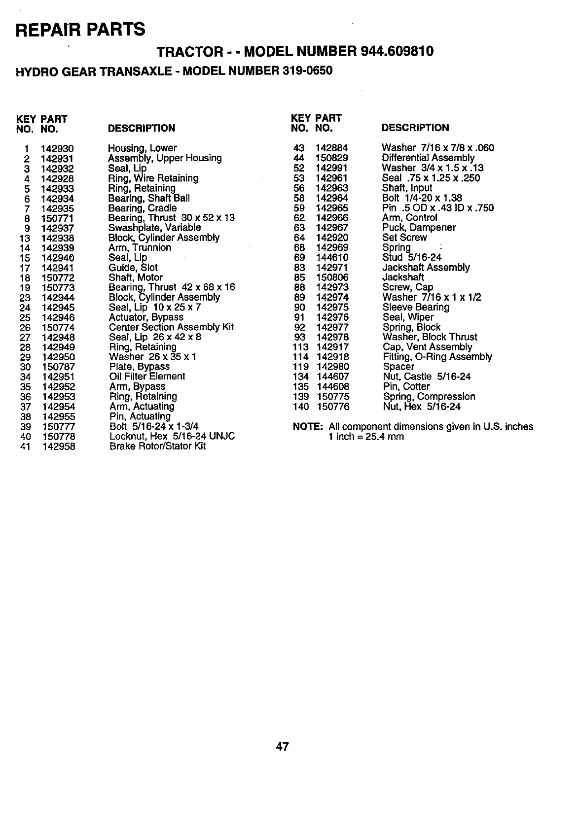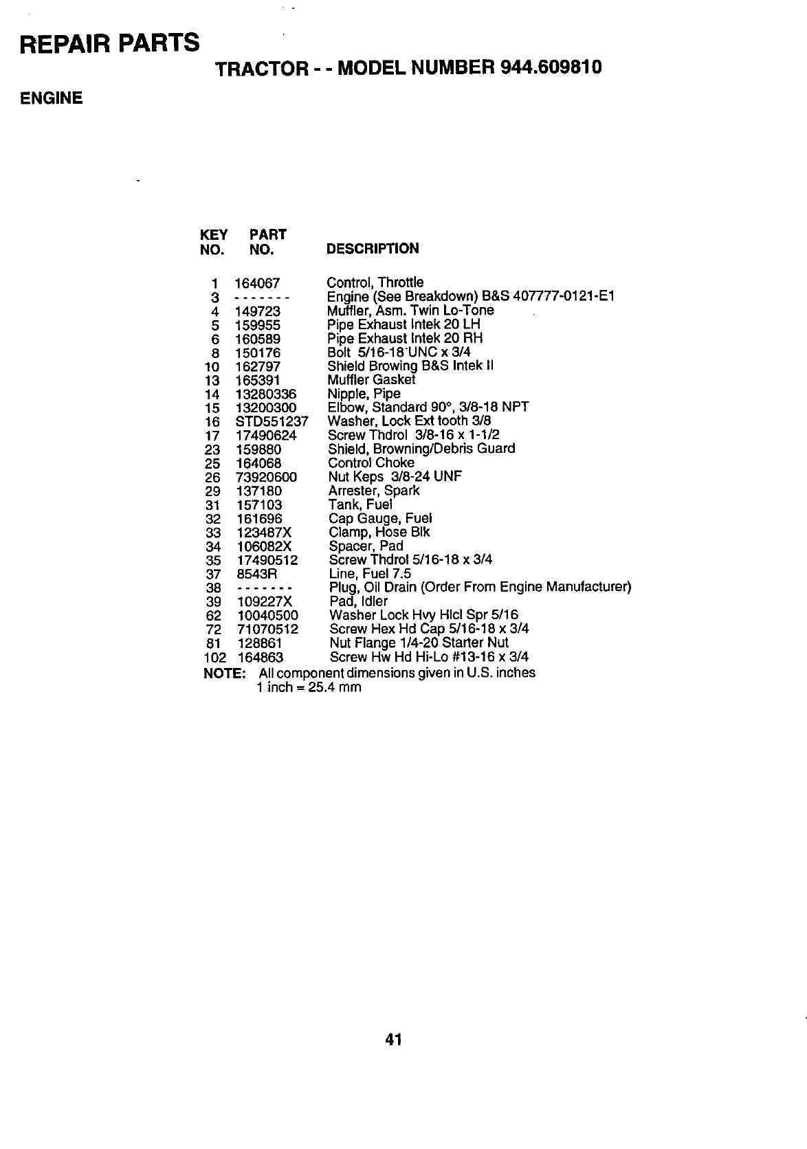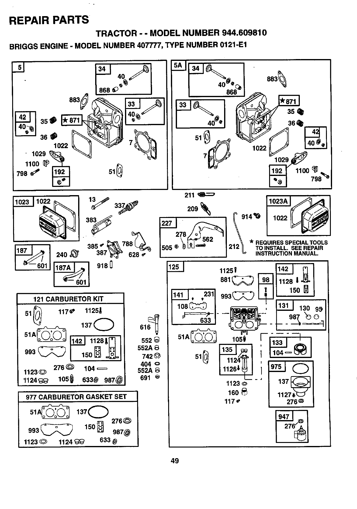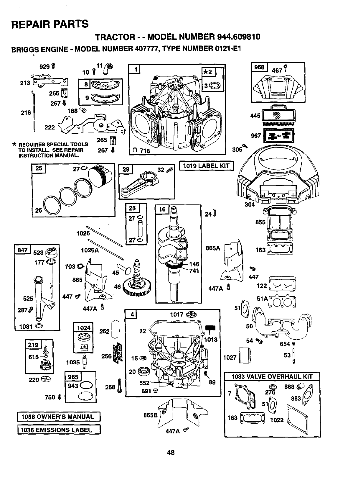 User Manual: Craftsman 944609810 944609810 CRAFTSMAN LAWN TRACTOR - Manuals and Guides View the owners manual for your CRAFTSMAN LAWN TRACTOR #944609810. Home:Lawn & Garden Parts:Craftsman Parts:Craftsman LAWN TRACTOR Manual