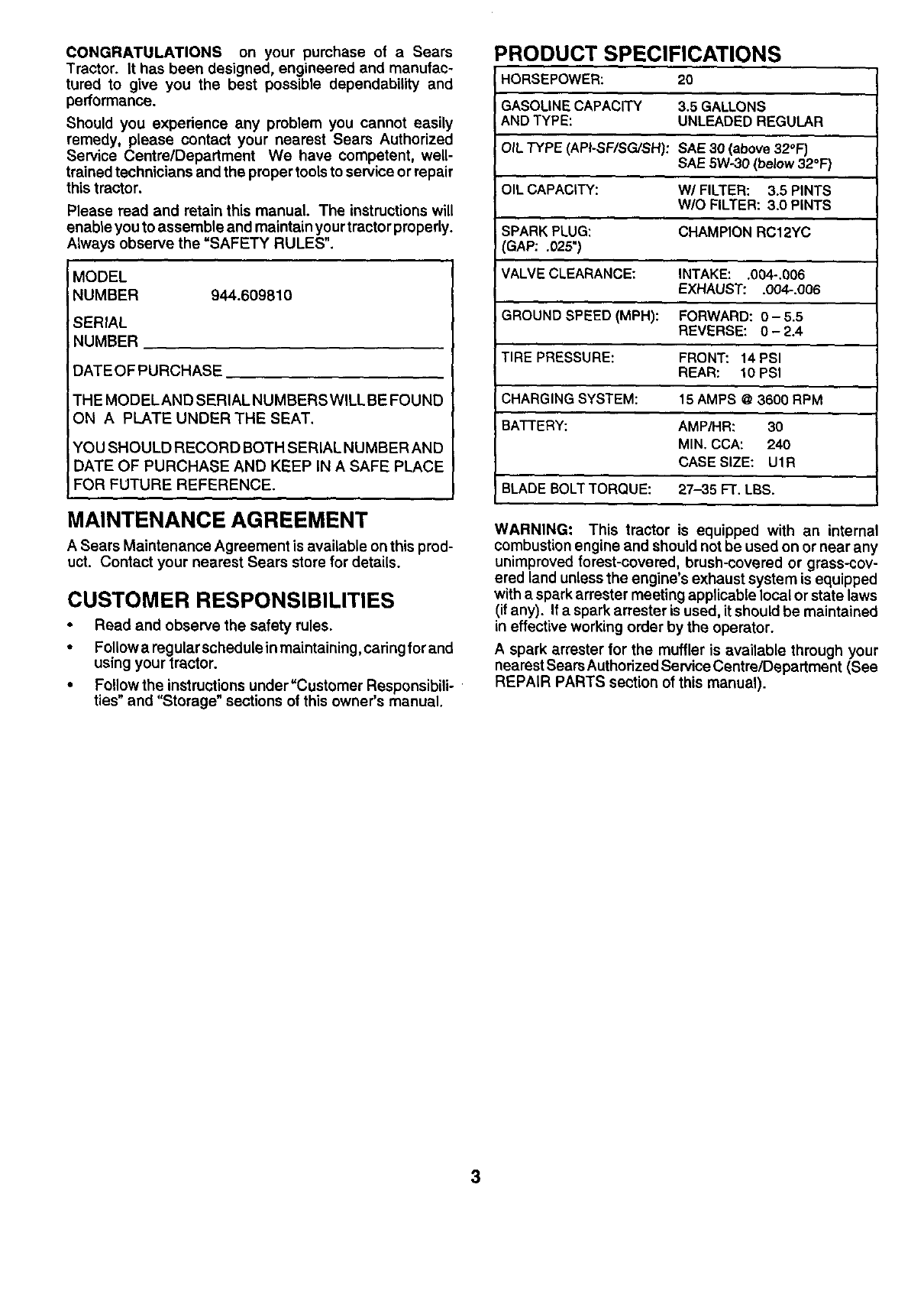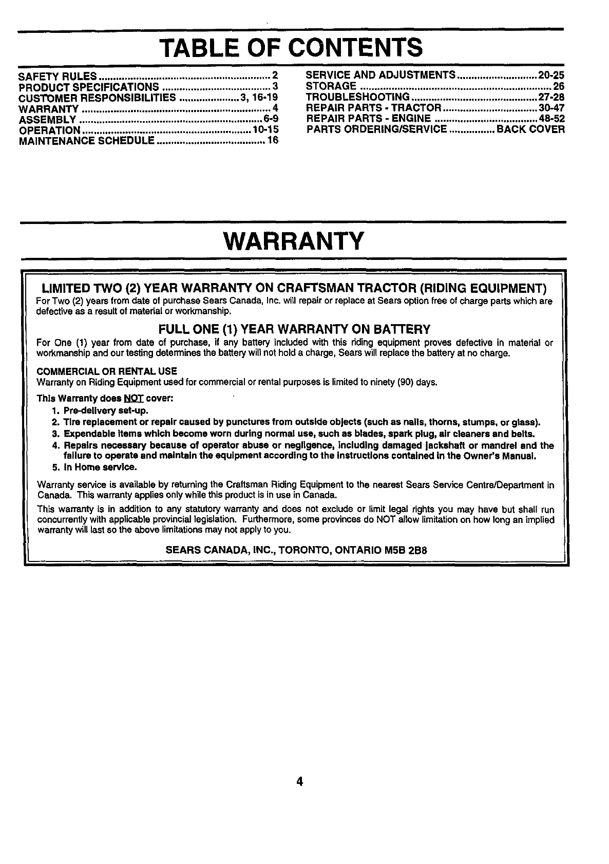 Craftsman 944609810 User Manual LAWN TRACTOR Manuals And Guides 99020015