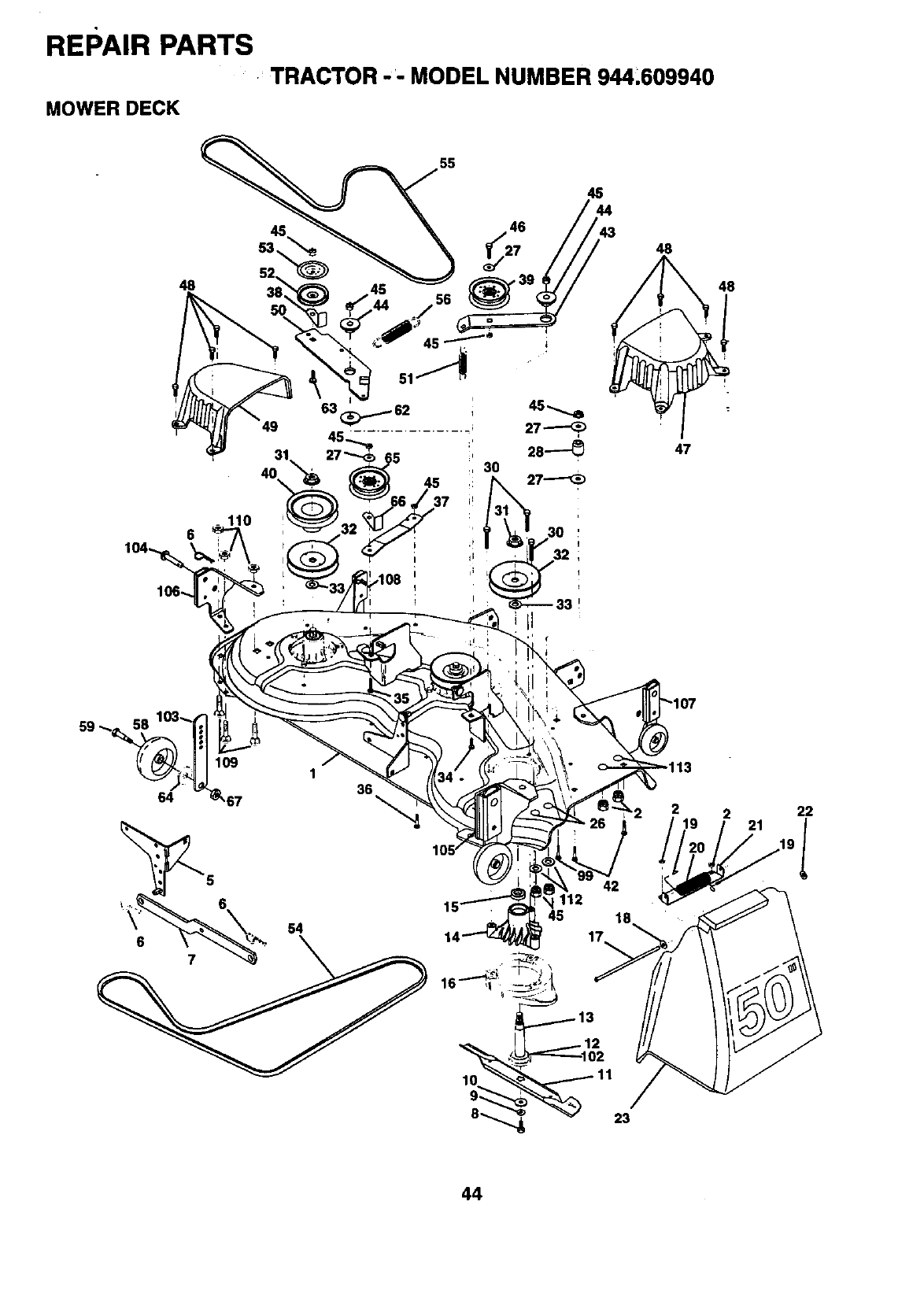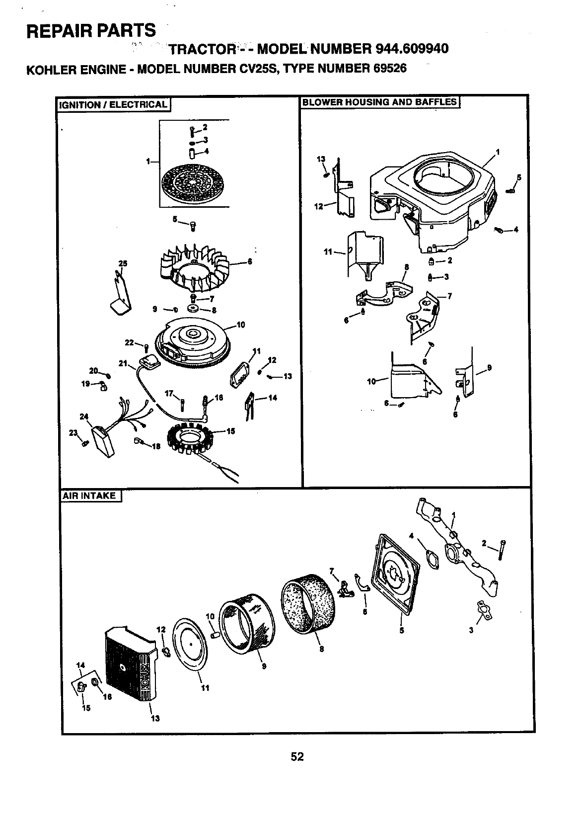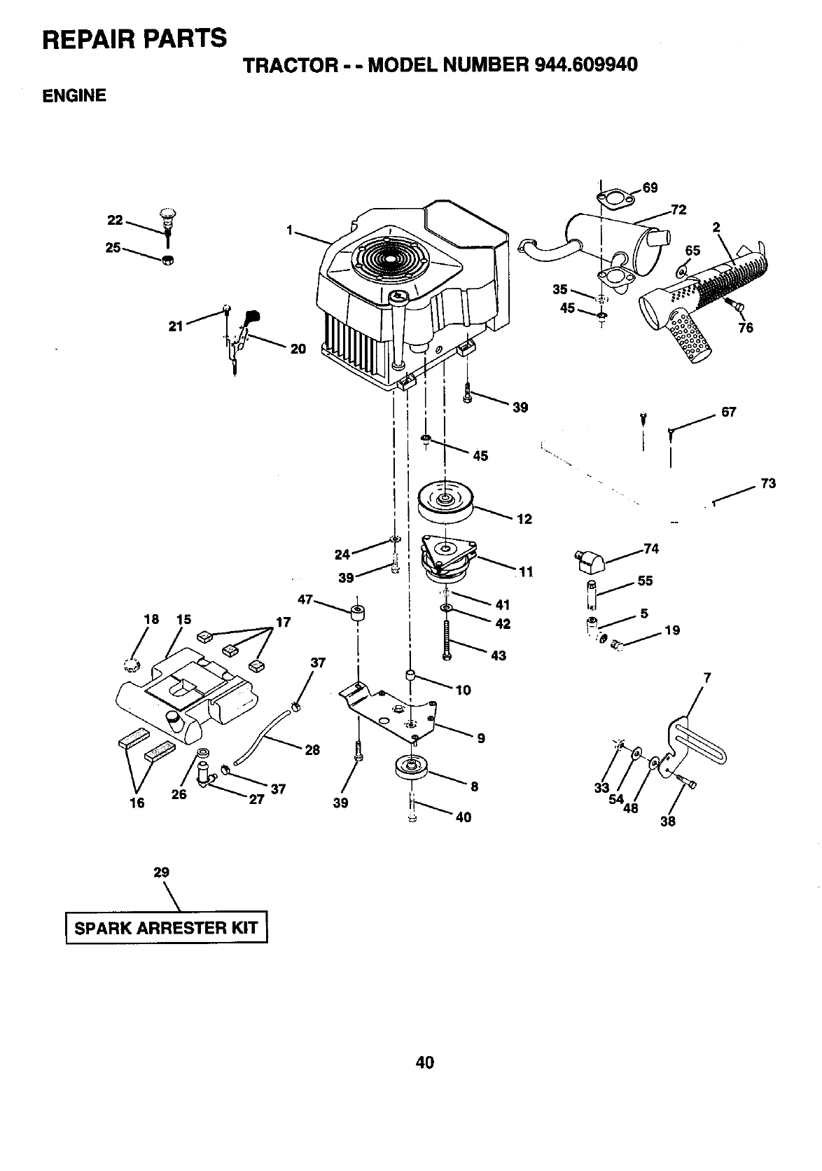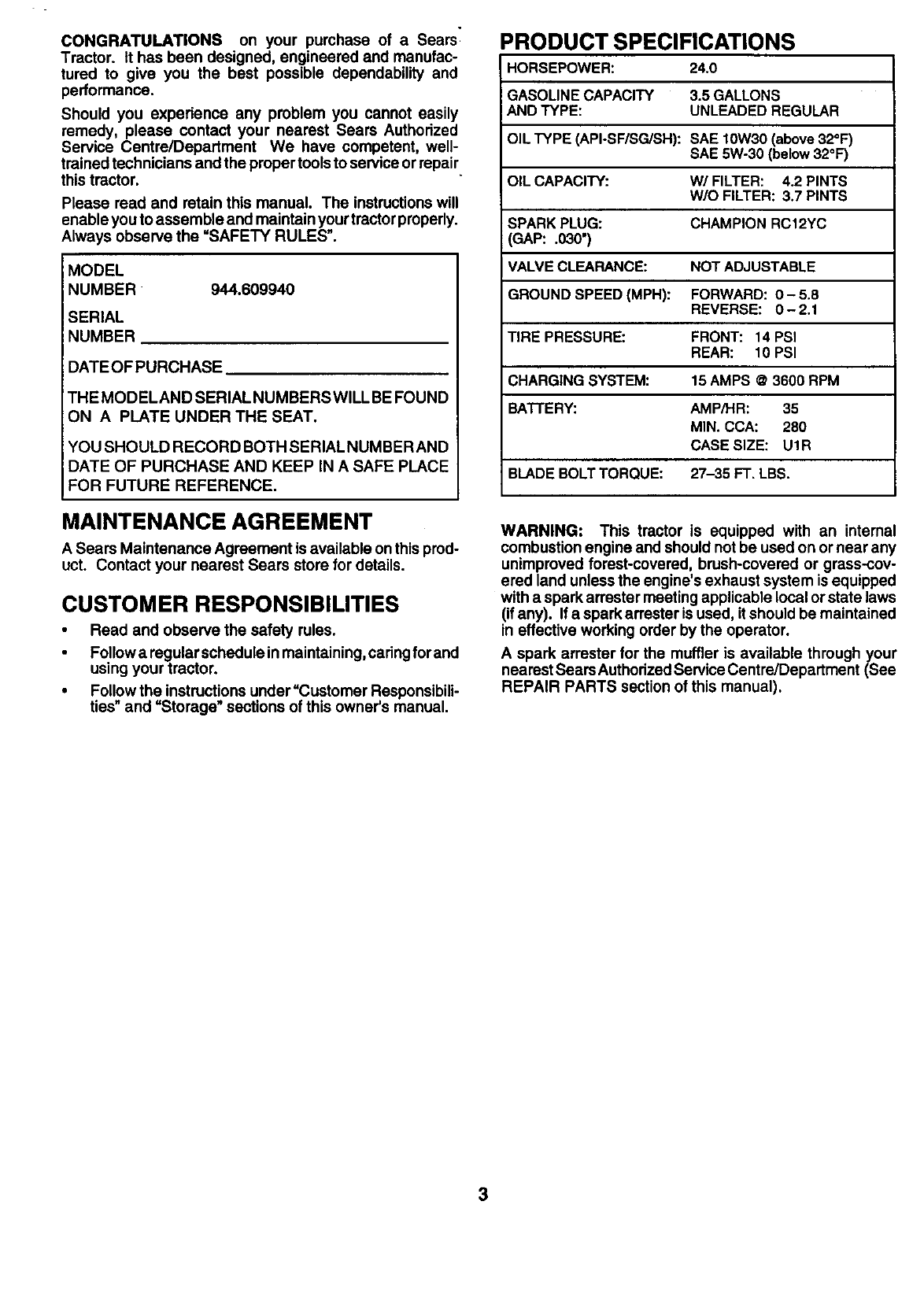 User Manual: Craftsman 944609940 944609940 CRAFTSMAN LAWN TRACTOR - Manuals and Guides View the owners manual for your CRAFTSMAN LAWN TRACTOR #944609940. Home:Lawn & Garden Parts:Craftsman Parts:Craftsman LAWN TRACTOR Manual