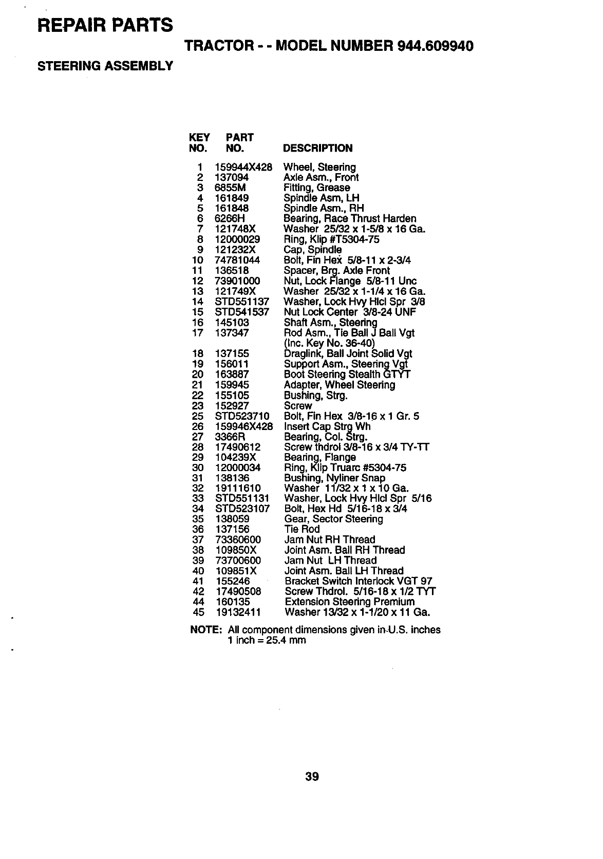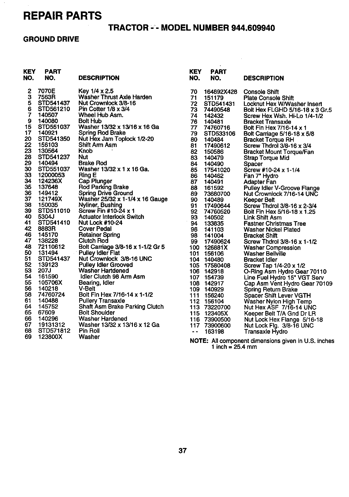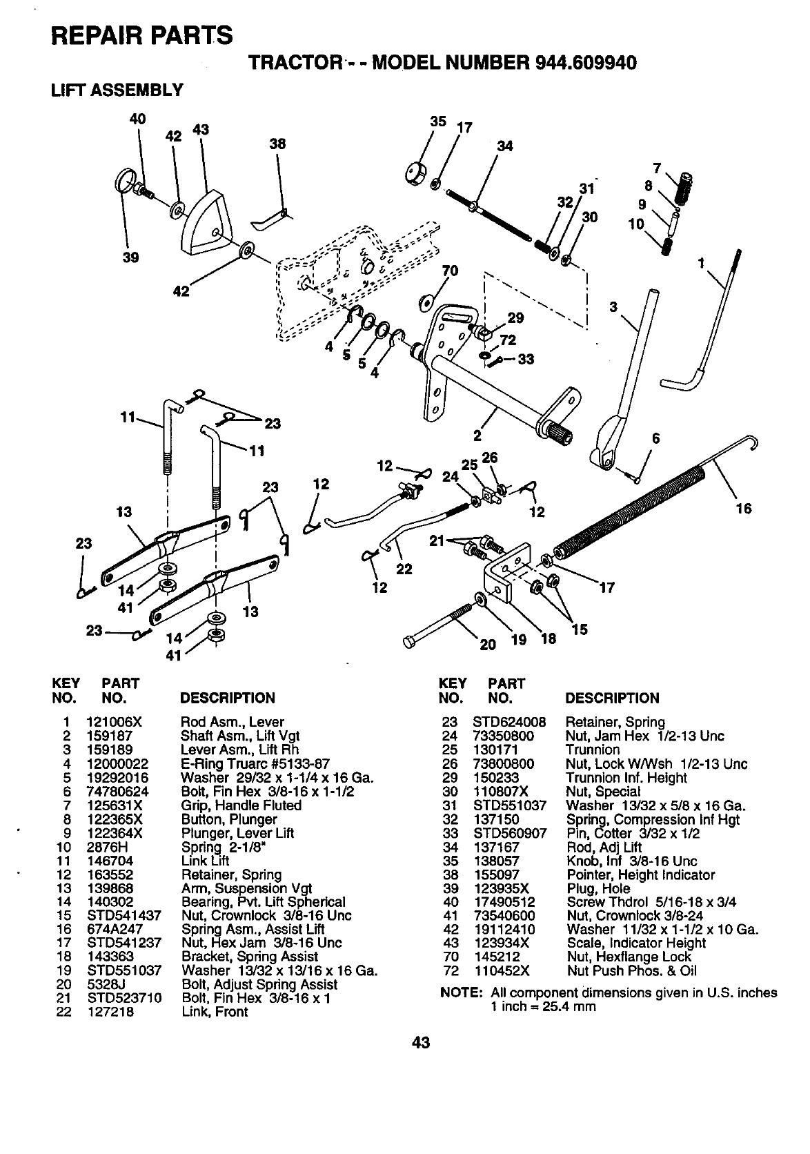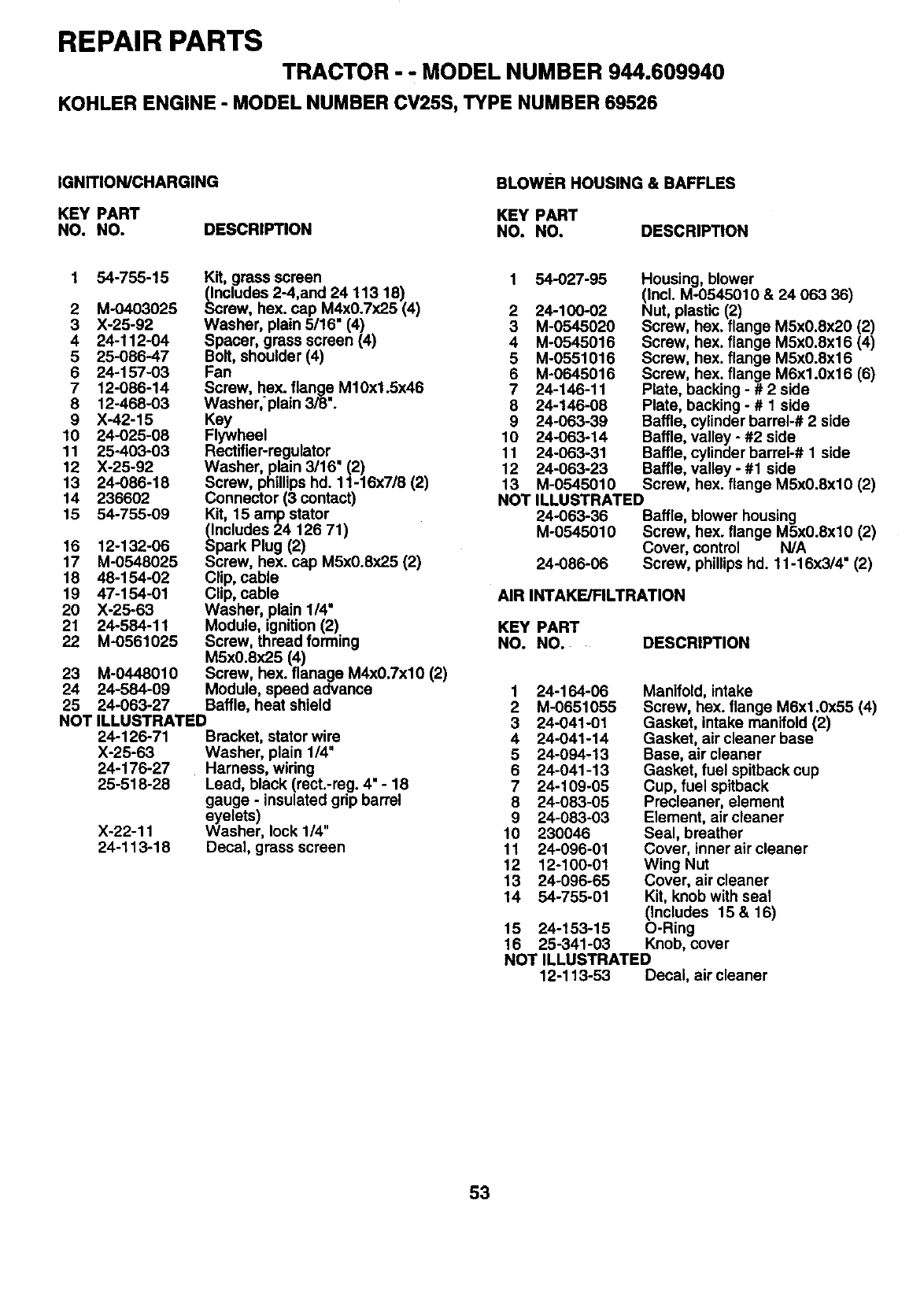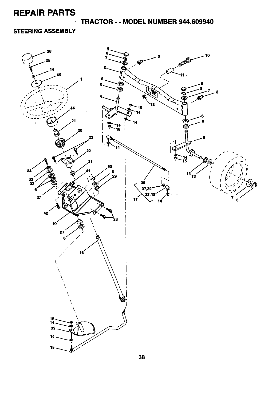 User Manual: Craftsman 944609940 944609940 CRAFTSMAN LAWN TRACTOR - Manuals and Guides View the owners manual for your CRAFTSMAN LAWN TRACTOR #944609940. Home:Lawn & Garden Parts:Craftsman Parts:Craftsman LAWN TRACTOR Manual