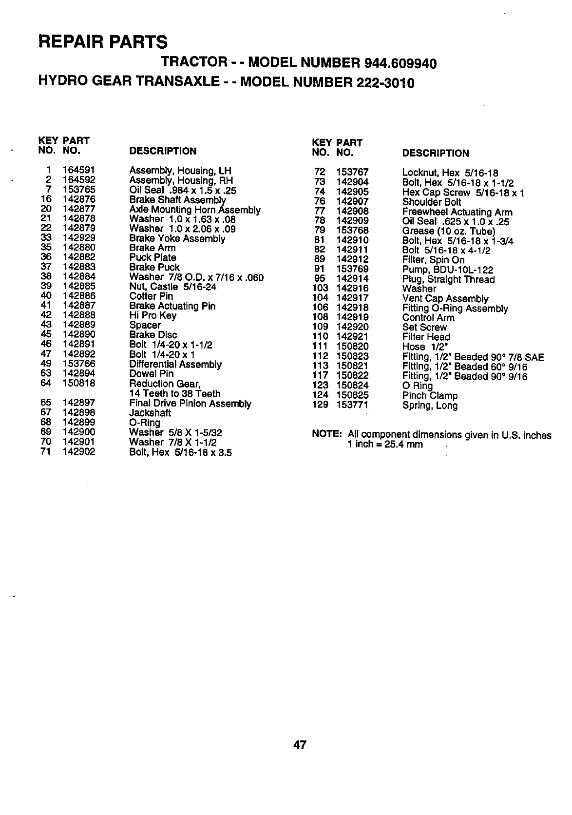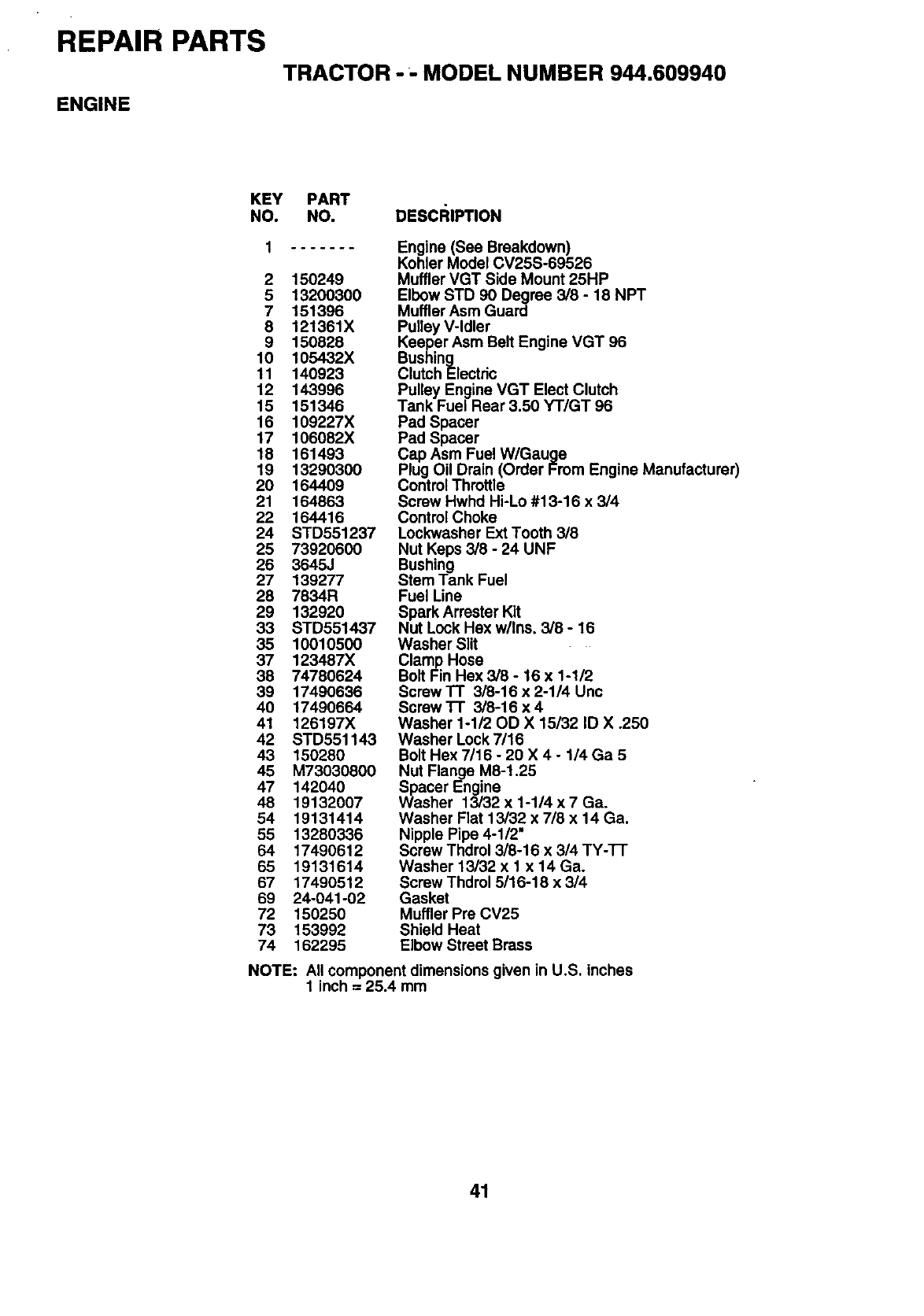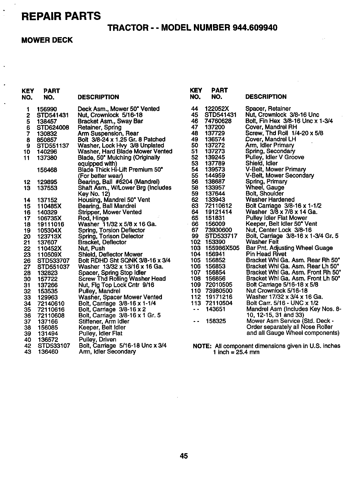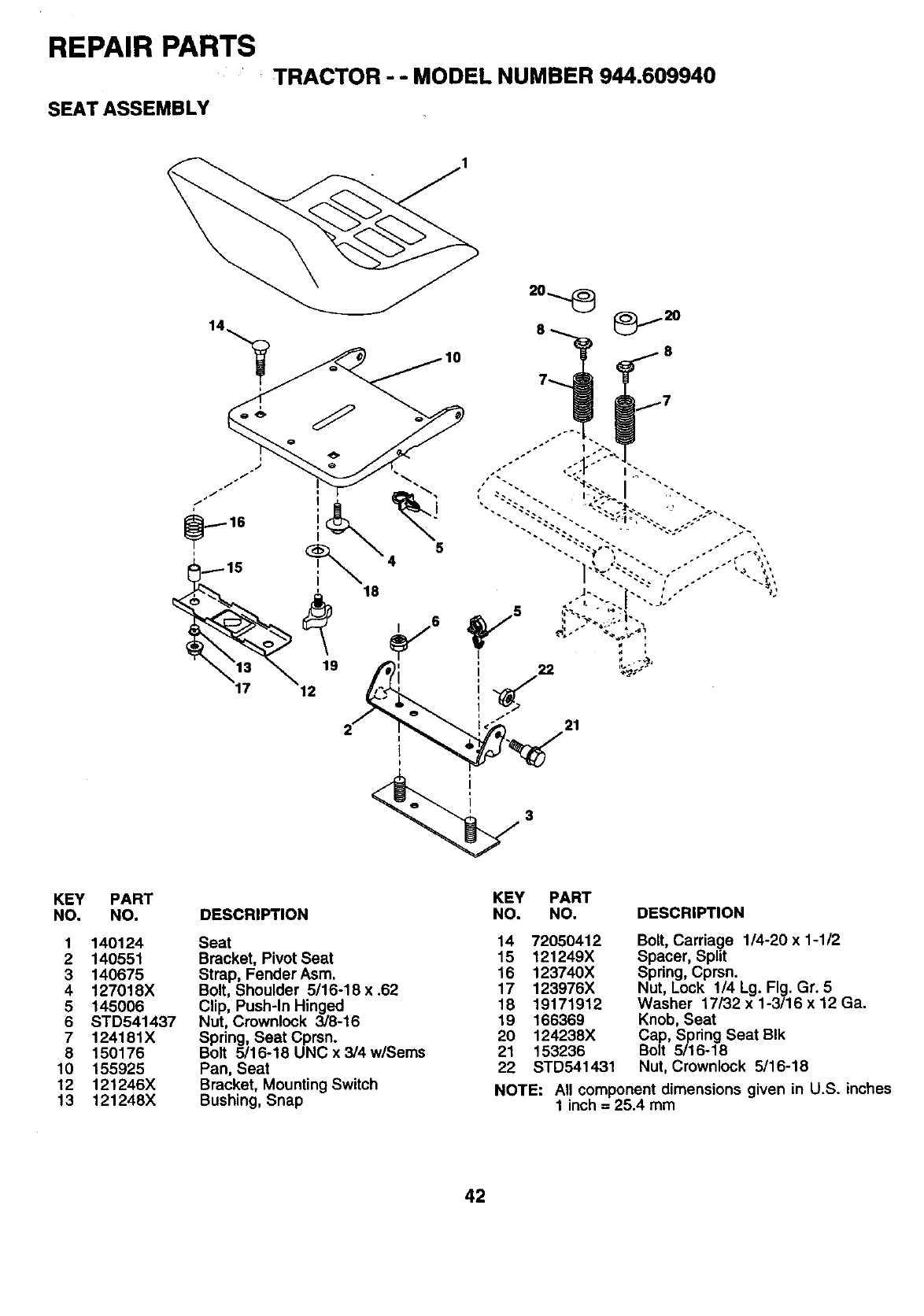 User Manual: Craftsman 944609940 944609940 CRAFTSMAN LAWN TRACTOR - Manuals and Guides View the owners manual for your CRAFTSMAN LAWN TRACTOR #944609940. Home:Lawn & Garden Parts:Craftsman Parts:Craftsman LAWN TRACTOR Manual