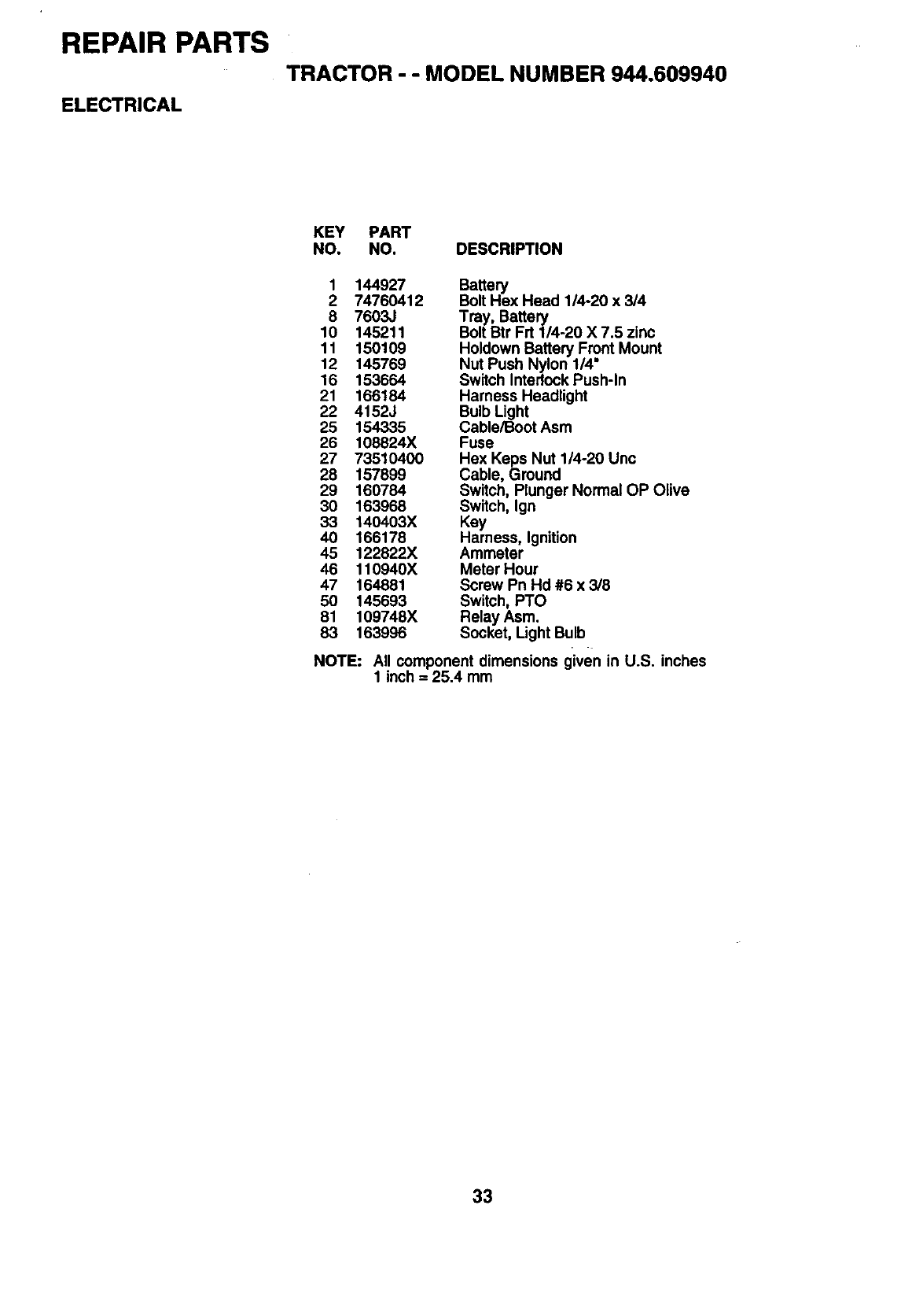 WHEN ORDERING REPAIR PARTS, ALWAYS GIVE THE FOLLOWING