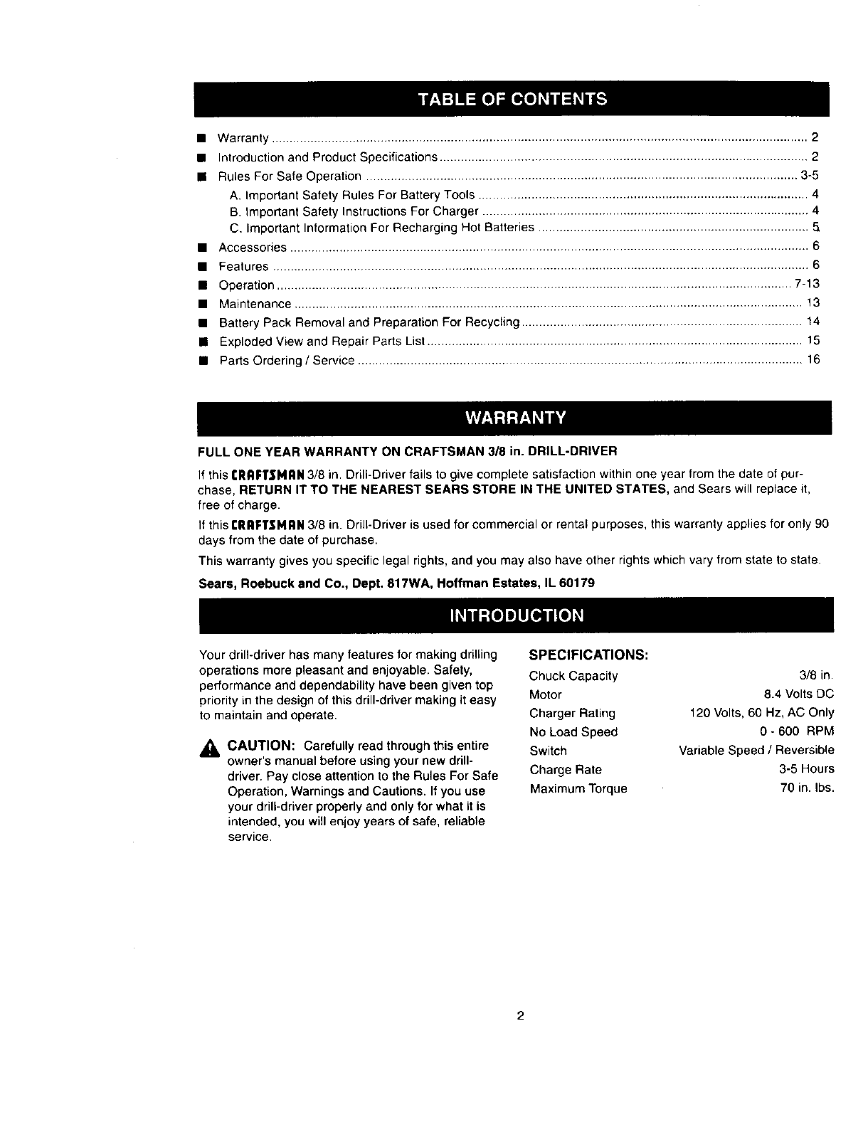 model number in all correspondence regarding your 3/8 in. CORDLESS DRILL-DRIVER or when Iordering repair parts.