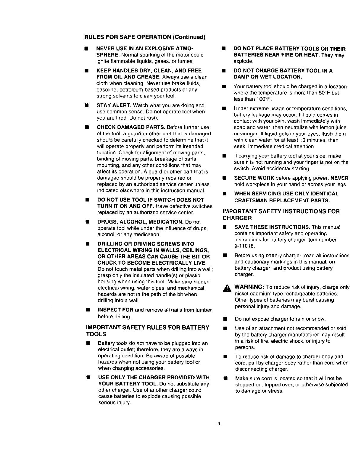 A. Important Safety Rules For Battery Tools .............................................................................................. 4