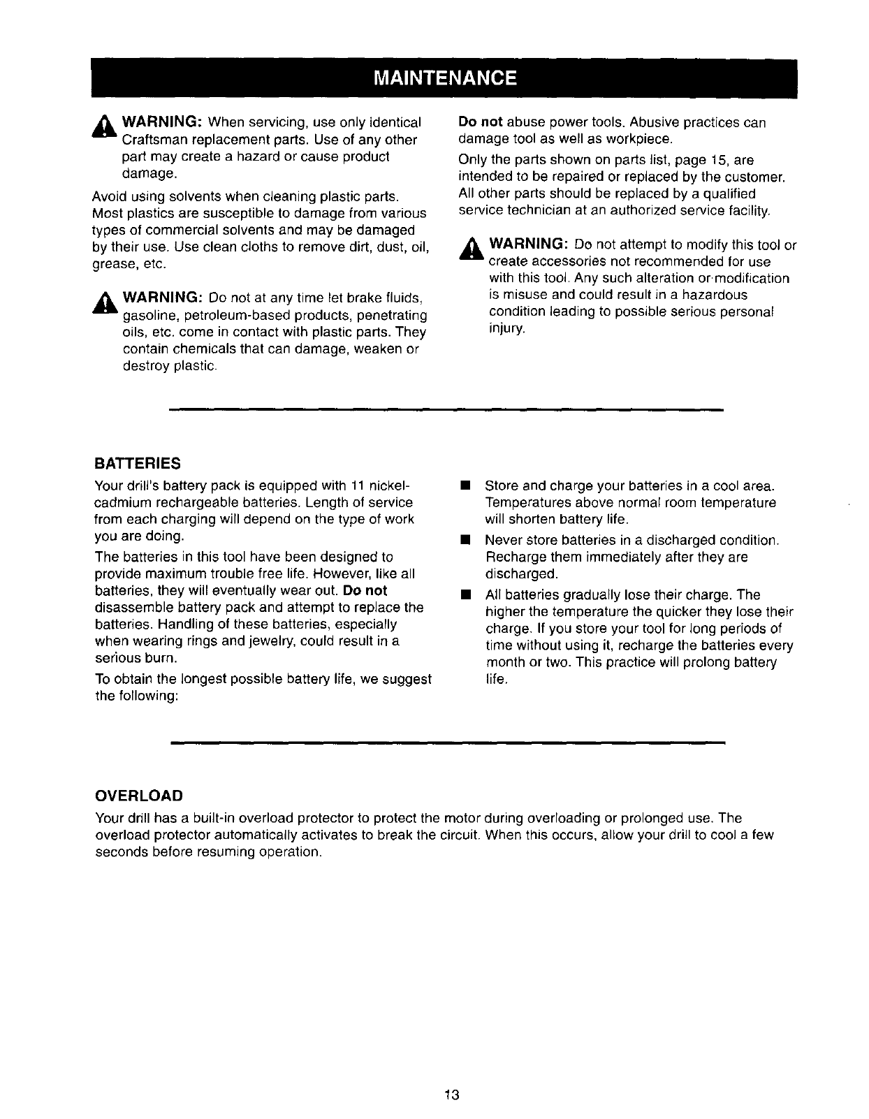 overload protector automatically activates to break the circuit. When this occurs, allow your drill to cool a few