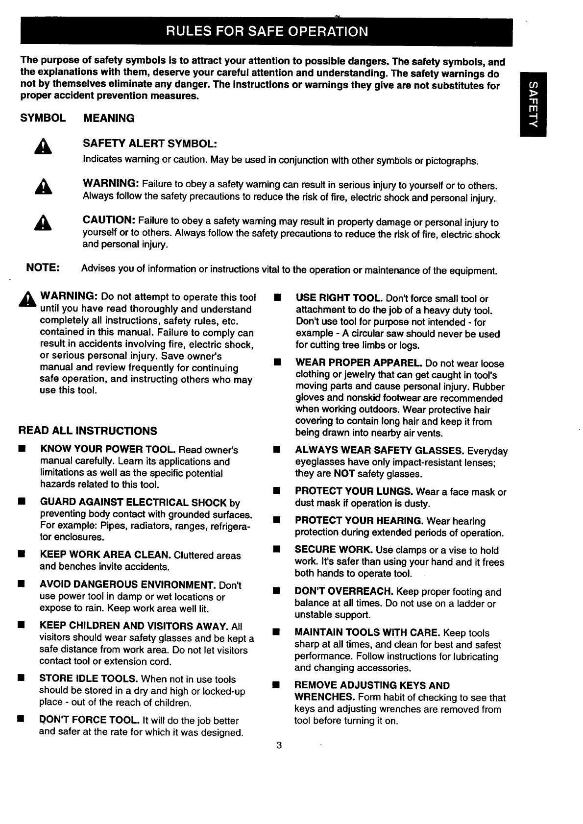 KNOW YOUR POWER TOOL. Read owner's