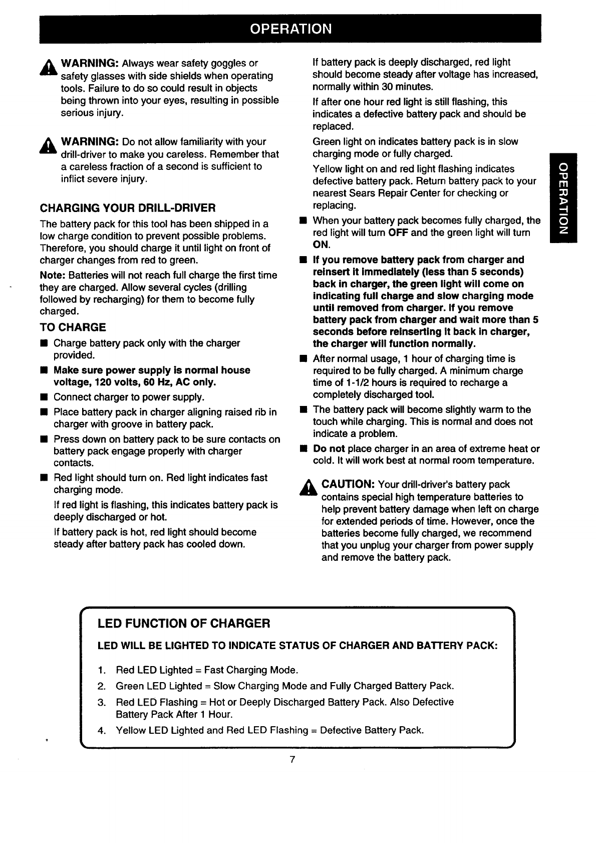 Charger Rating 120 Volts, 60 Hz, AC Only