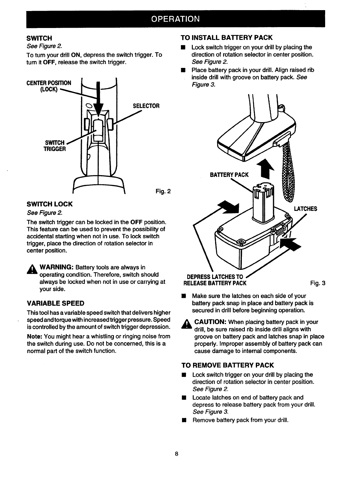 Operation, Warnings and Cautions. If you use