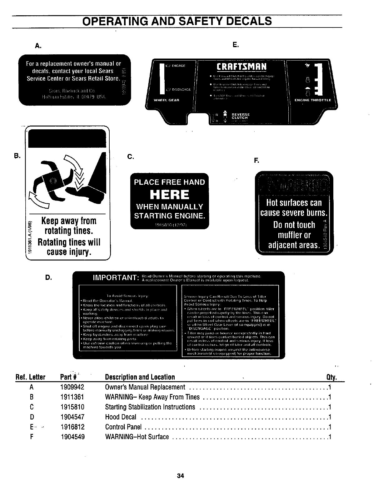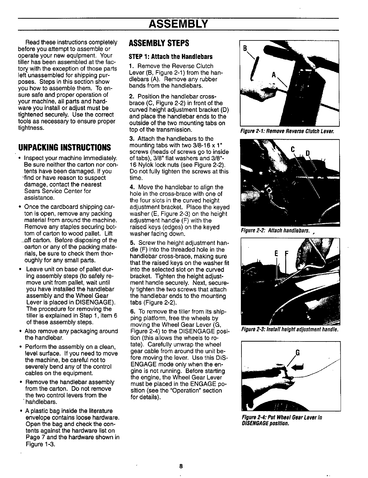 CRAFTSMAN Rear Tine, Gas Tiller Manual 98120211 CRAFTSMAN Rear Tine, Gas Tiller Owner's Manual, CRAFTSMAN Rear Tine, Gas Tiller installation guides