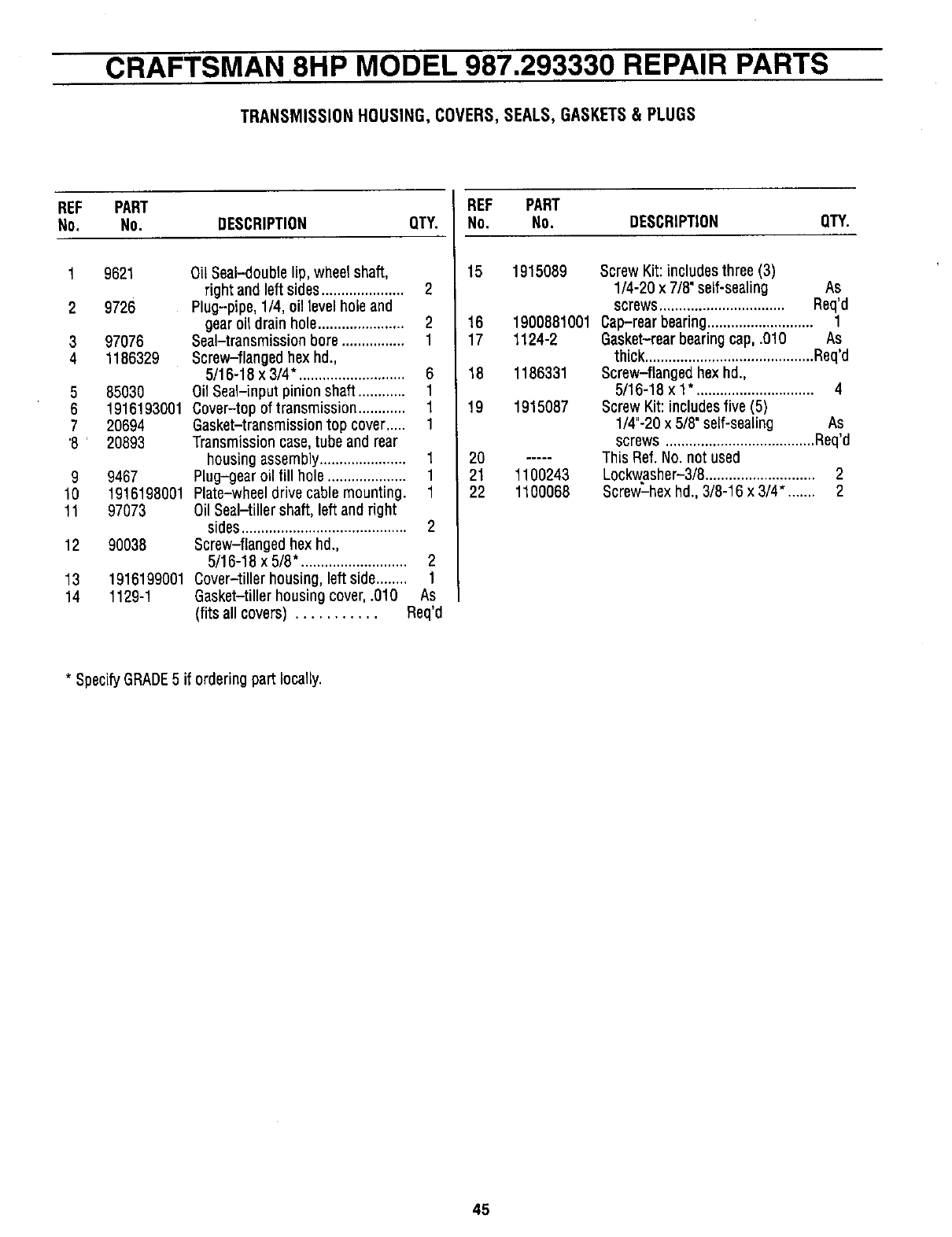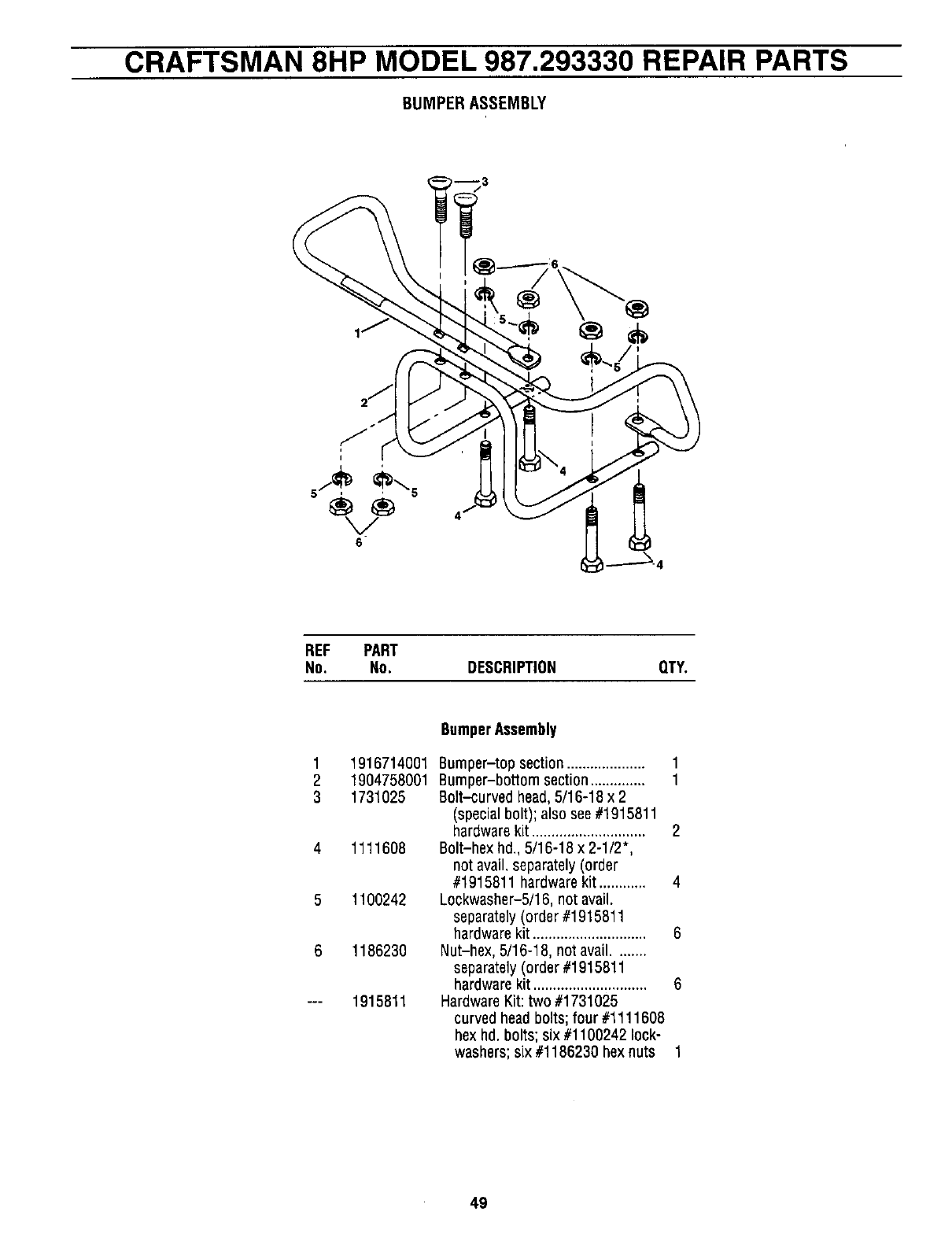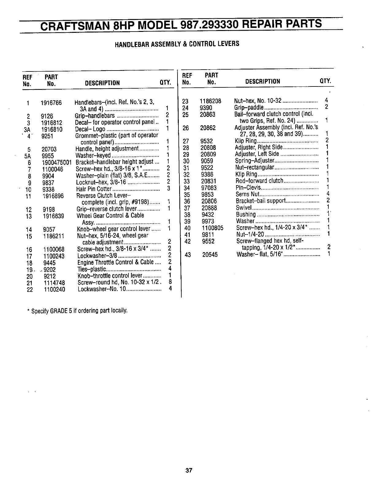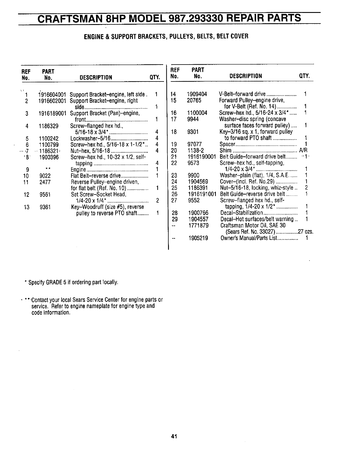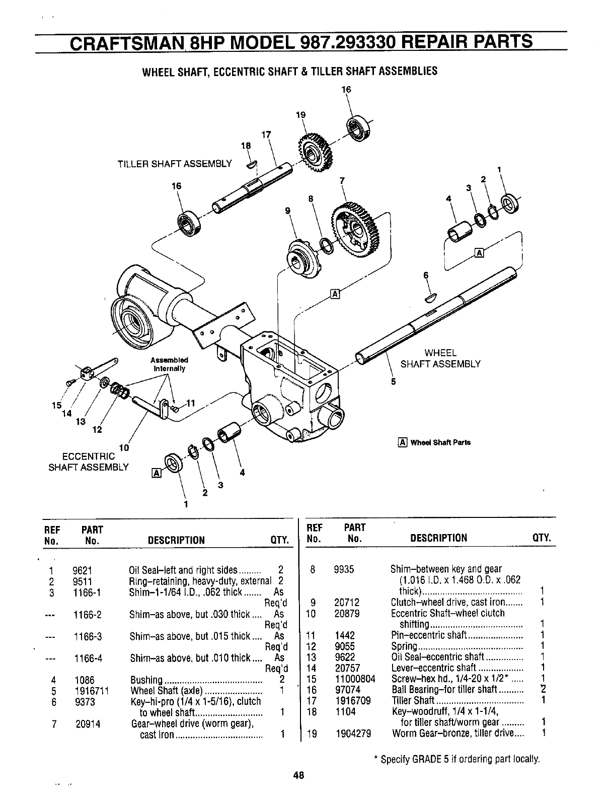 User Manual: Craftsman 987293330 987293330 CRAFTSMAN 8 HORSEPOWER REAR TINE TILLER - Manuals and Guides View the owners manual for your CRAFTSMAN 8 HORSEPOWER REAR TINE TILLER #987293330. Home:Lawn & Garden Parts:Craftsman Parts:Craftsman 8 HORSEPOWER REAR TINE TILLER Manual