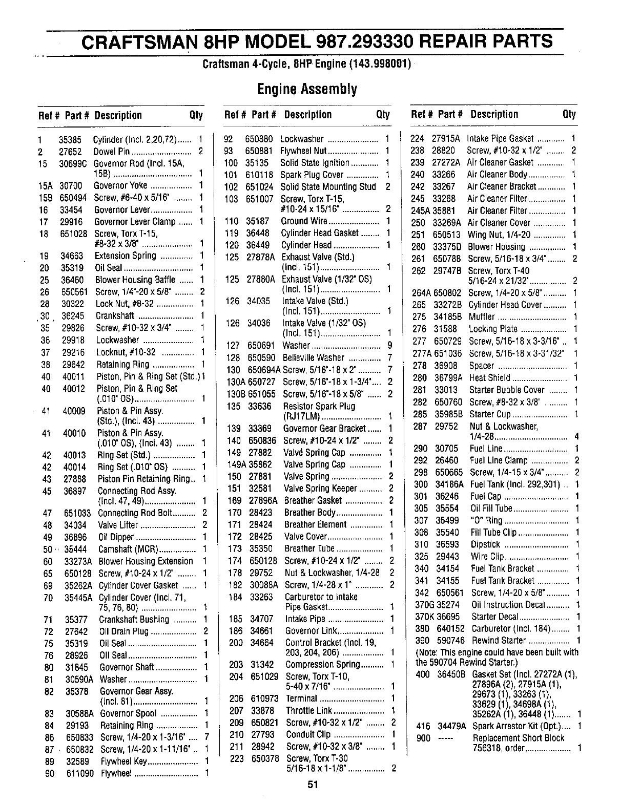 ..StarterNo. 590704 --Craftsman 4-Cycle, 8HP Engine(143.998001)