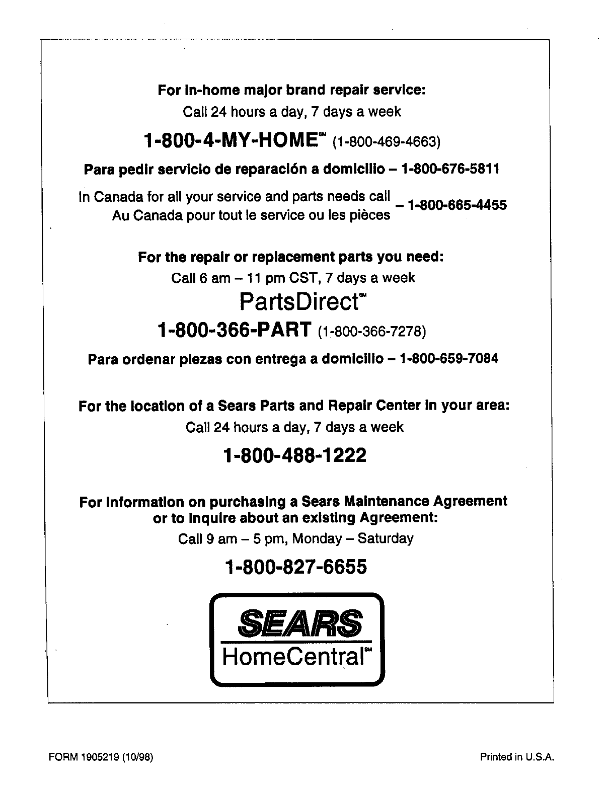 Para pedlr eervicio de reparacl6n a domicllio - 1-800-676-5811