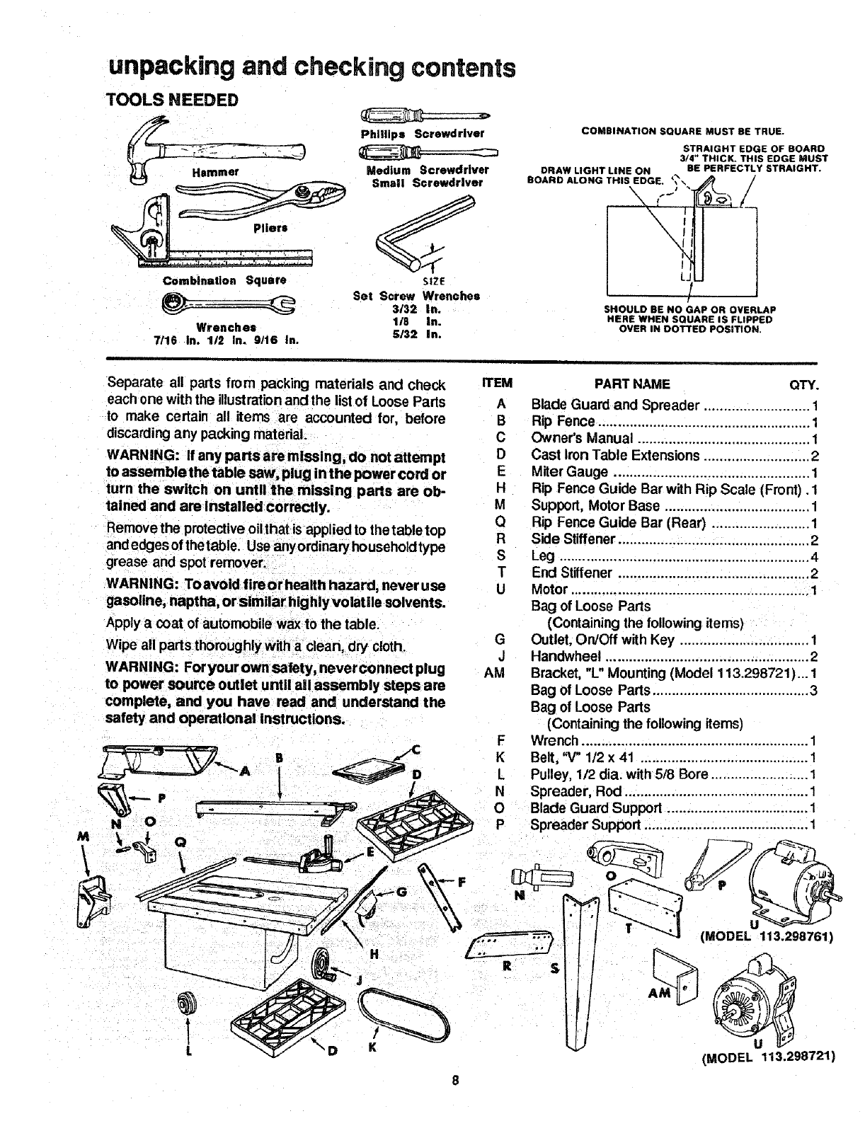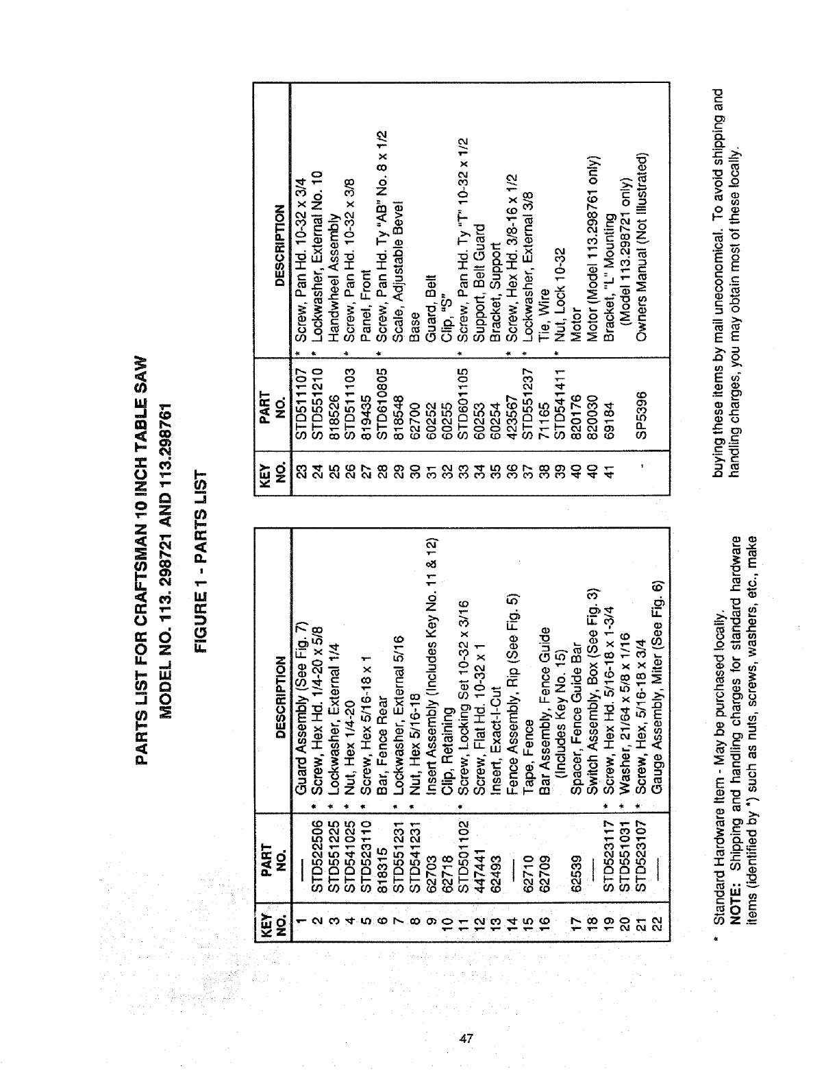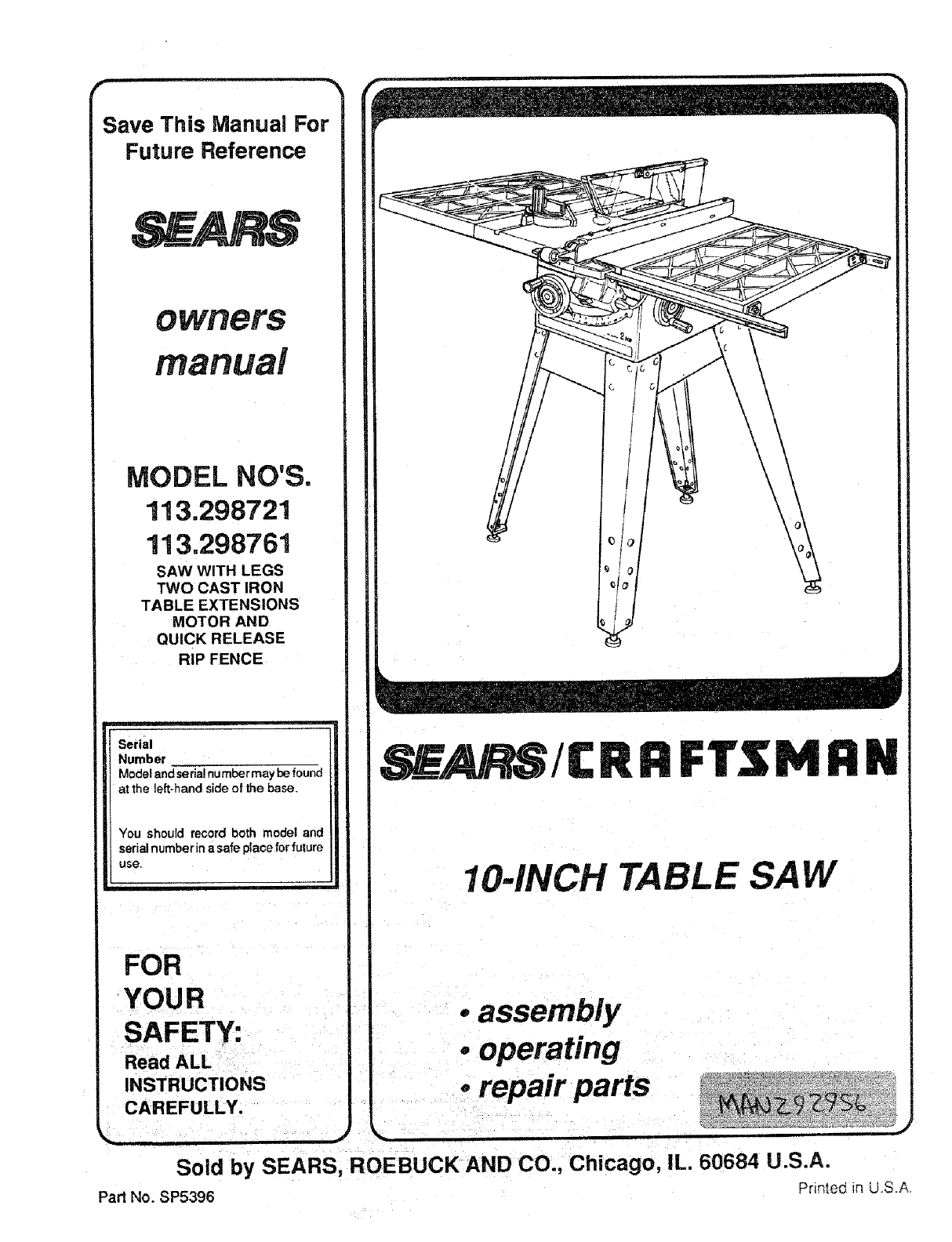 113298721 113298721 CRAFTSMAN TABLE SAW - Manuals and Guides L0804004 View the owners manual for your CRAFTSMAN TABLE SAW #113298721. Home:Tool Parts:Craftsman Parts:Craftsman TABLE SAW Manual