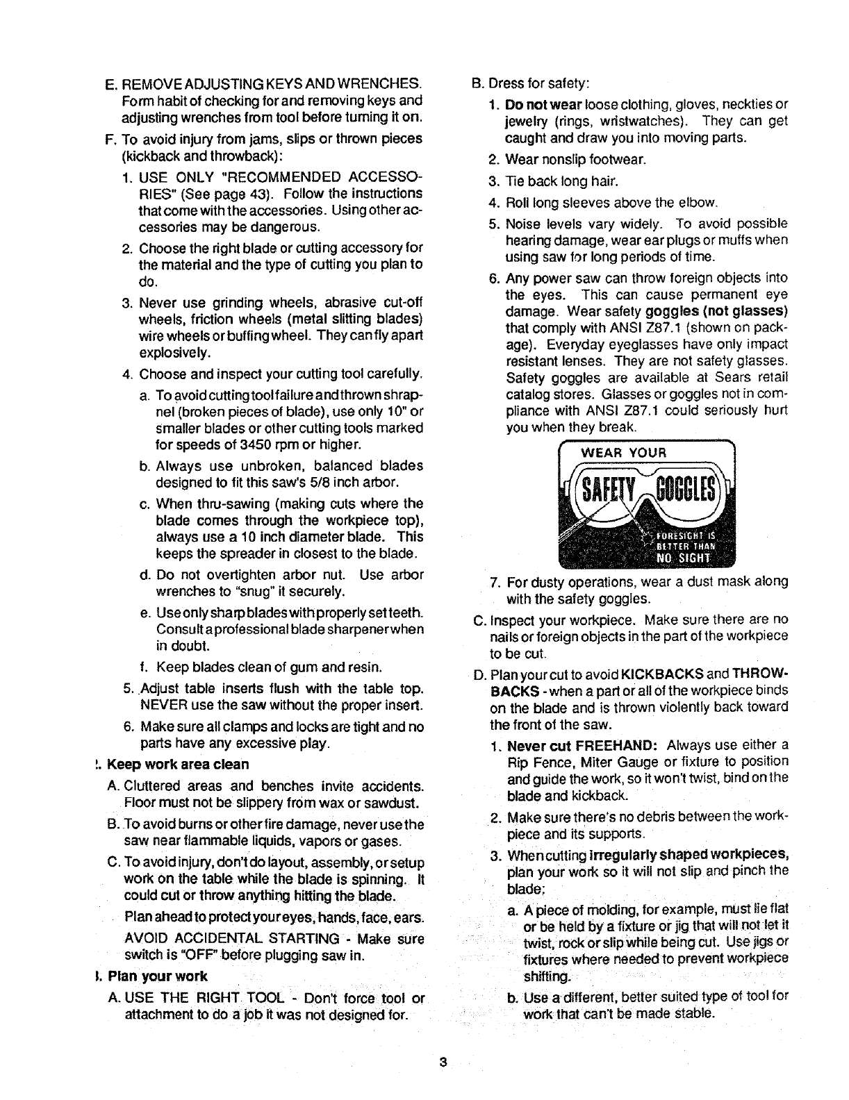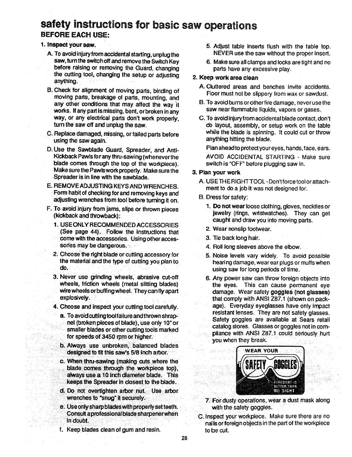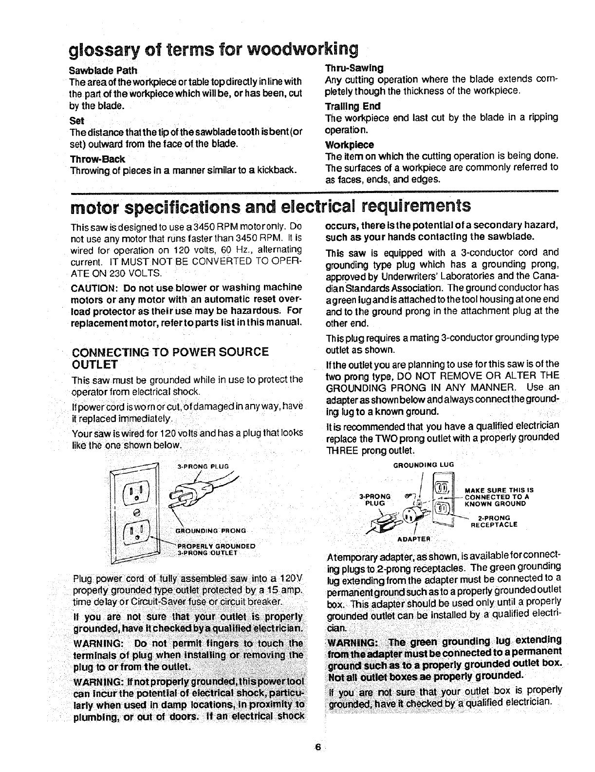 Safety is a combination of common sense, staying alert 4, GROUND THE SAW- This saw has an approved 3-