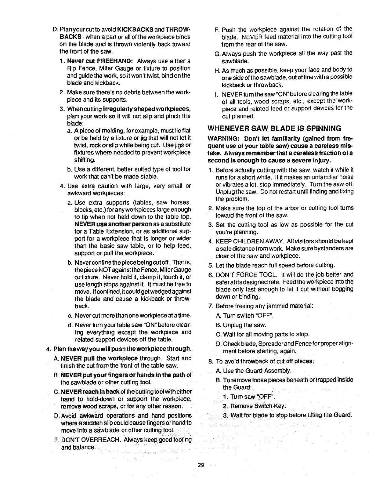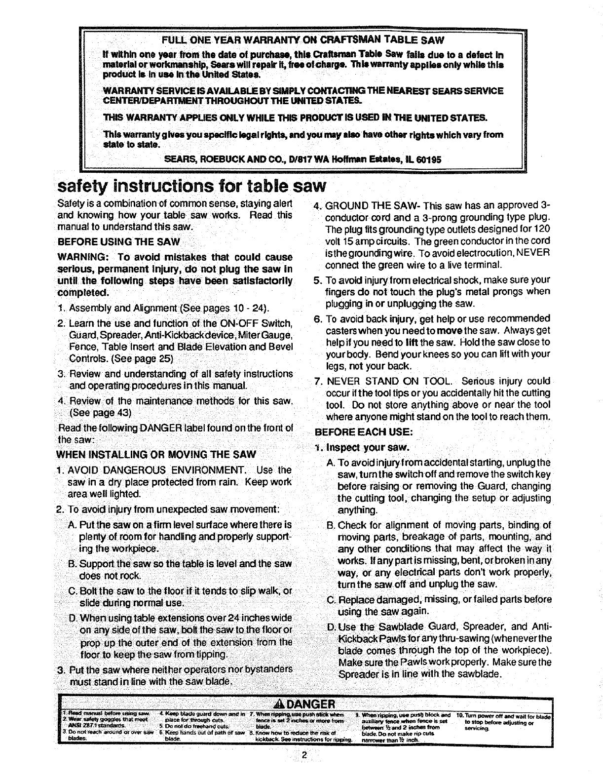 FULL ONE YEAR WARRANTY ON CRAFTSMAN TABLE SAW