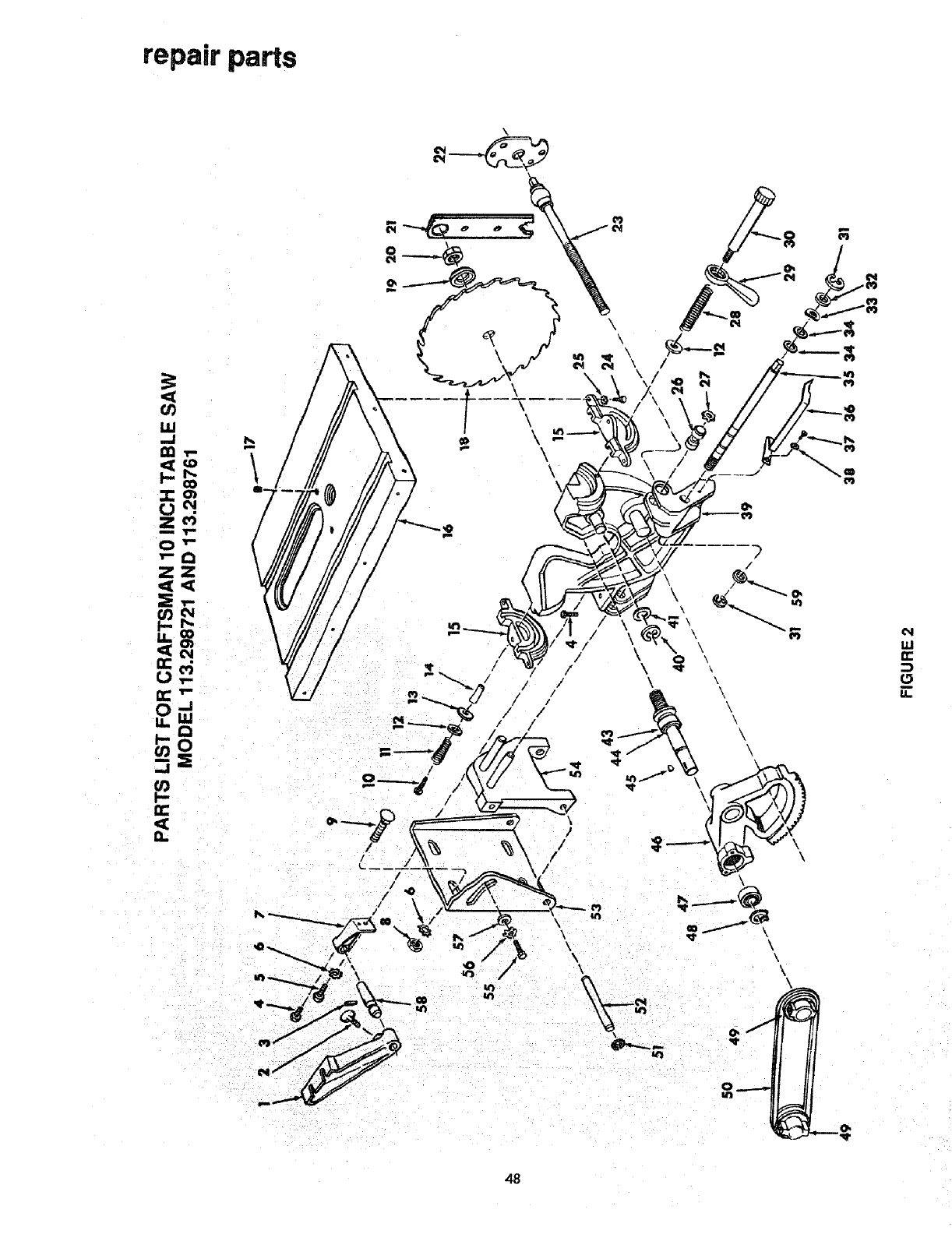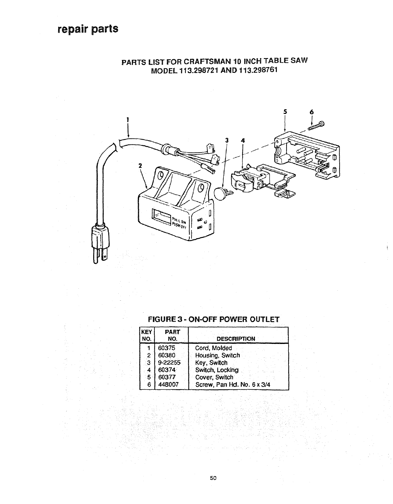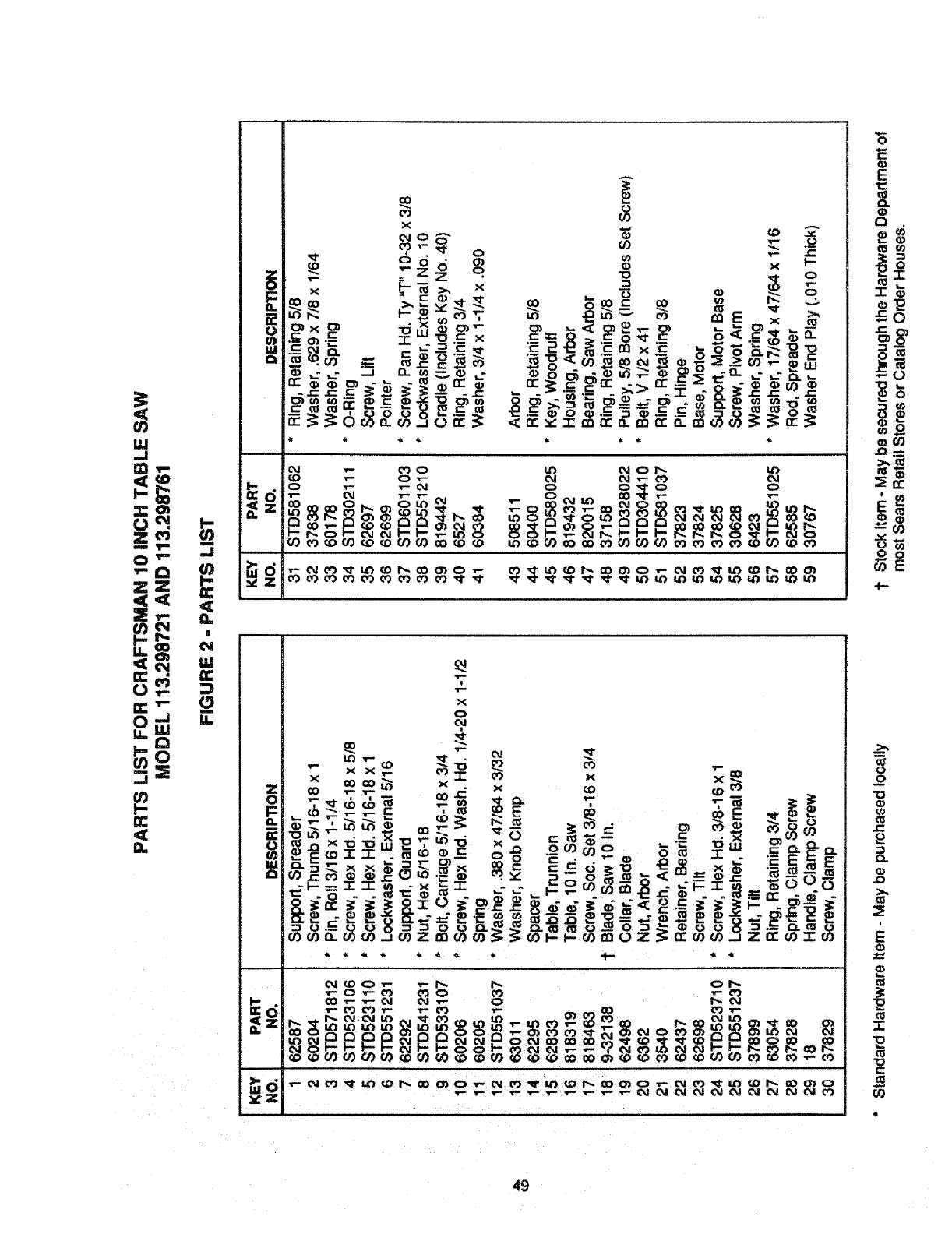 PARTS LiST FOR CRAFTSMAN 10 iNCH TABLE SAW
