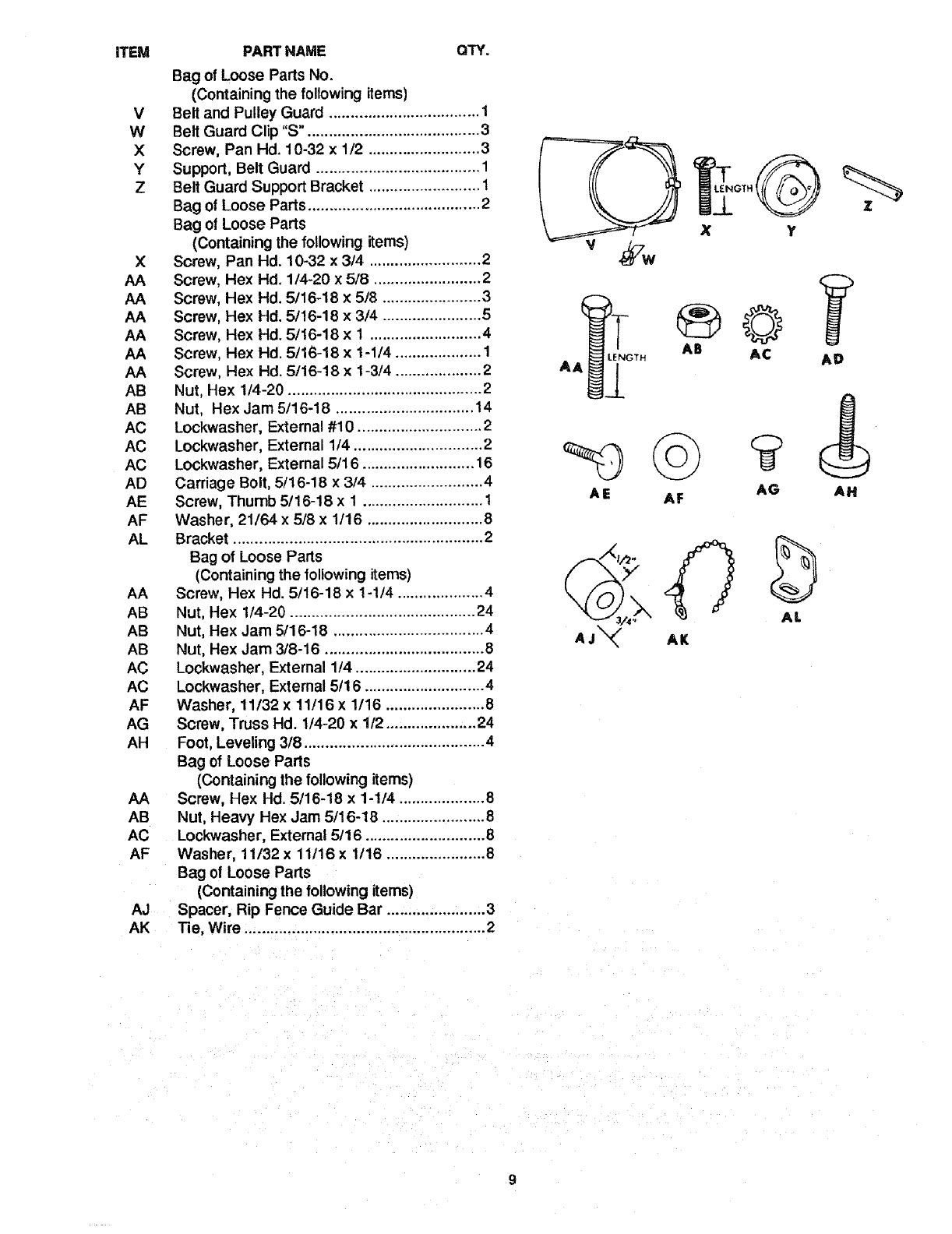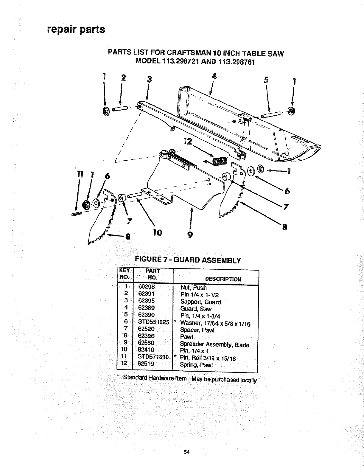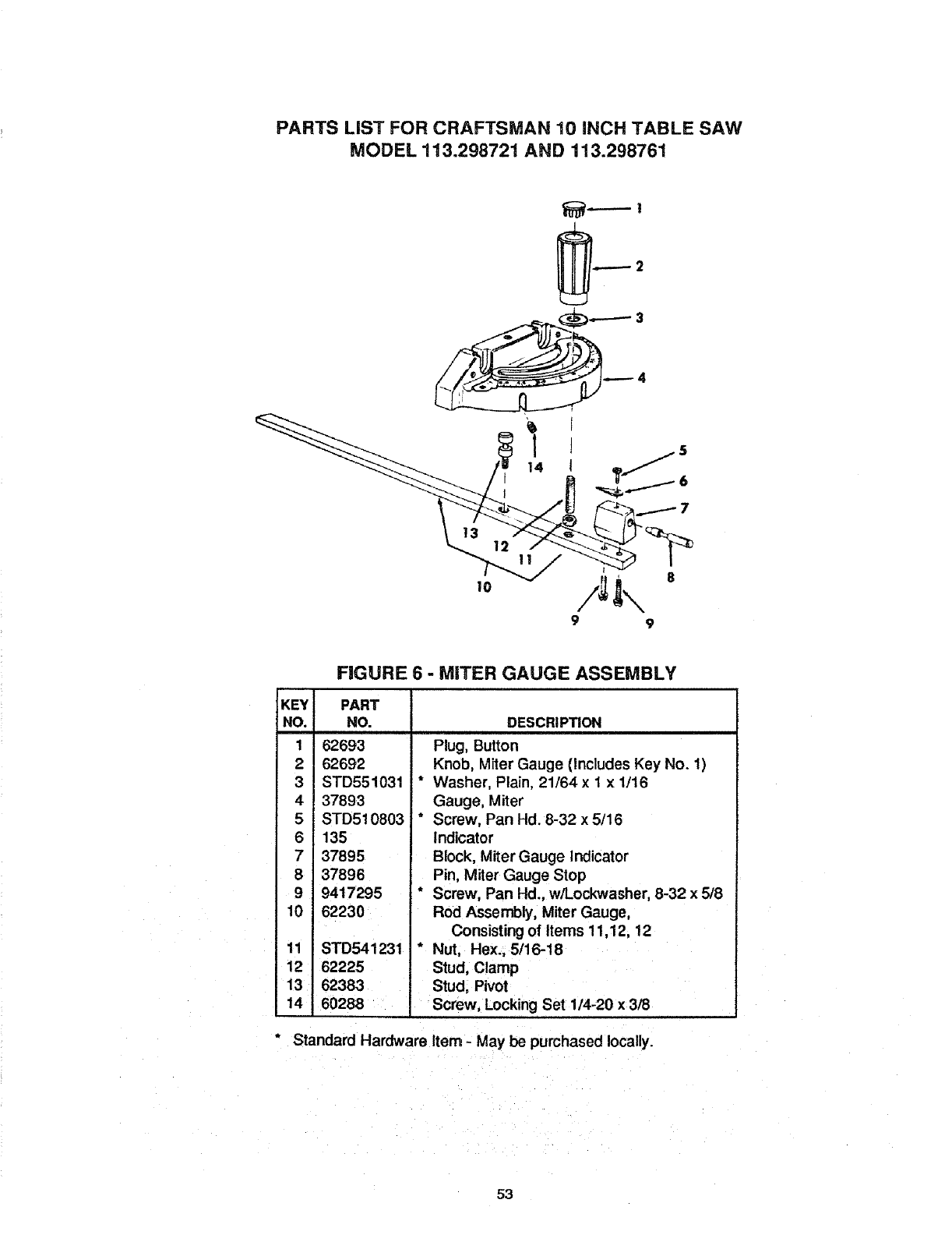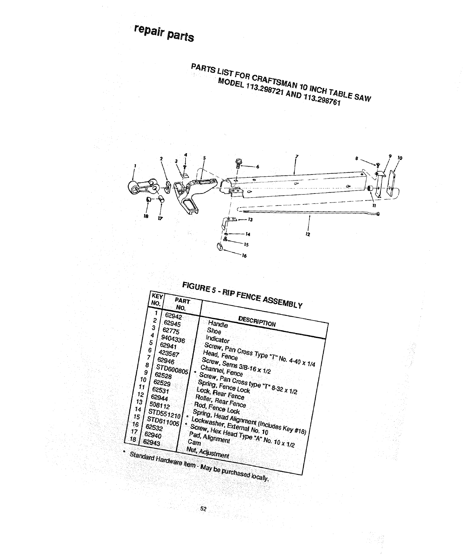 PARTS LiST FOR CRAFTSMAN 10 iNCH TABLE SAW