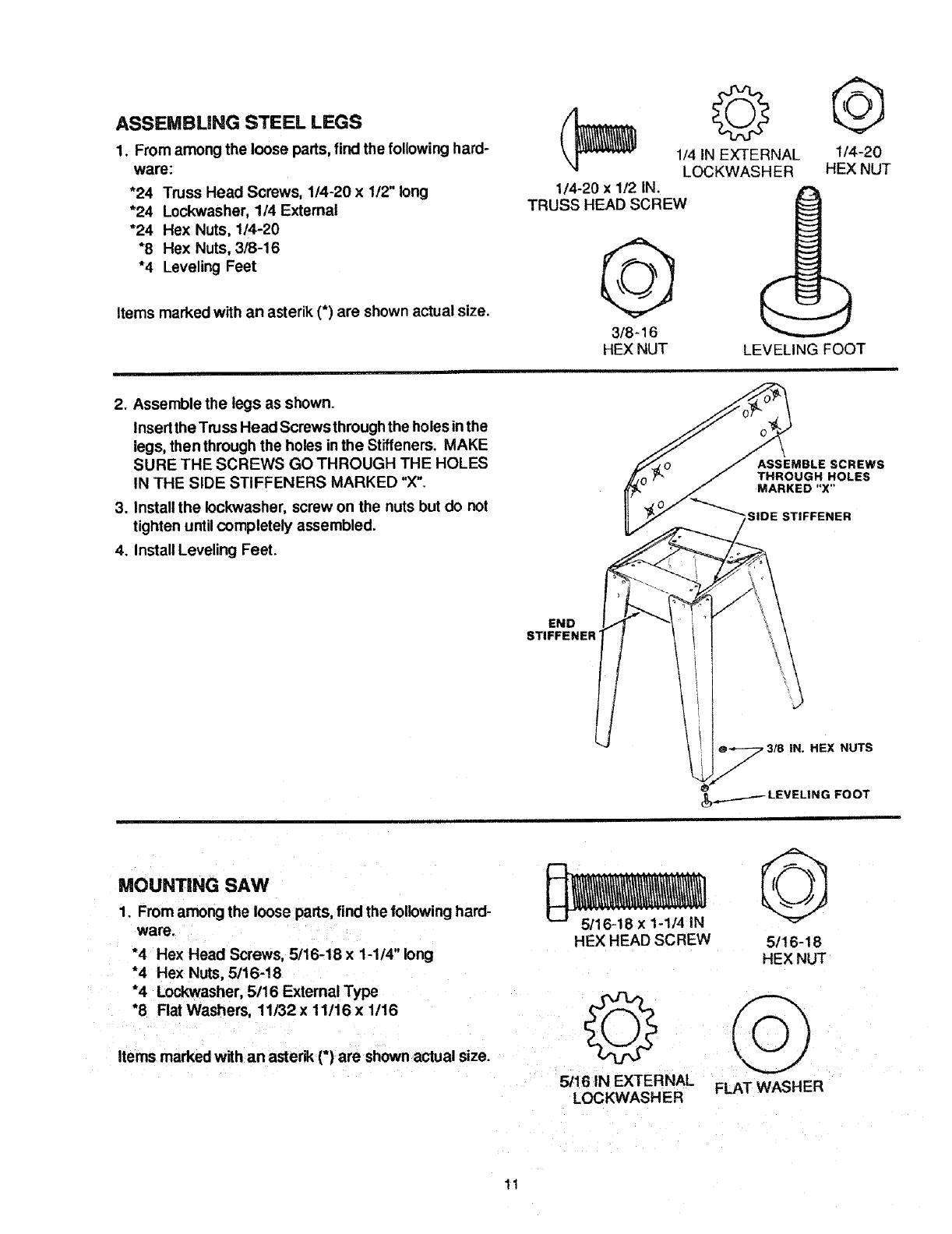 HARDWARE FOR ATTACHING LEGS TO SAW
