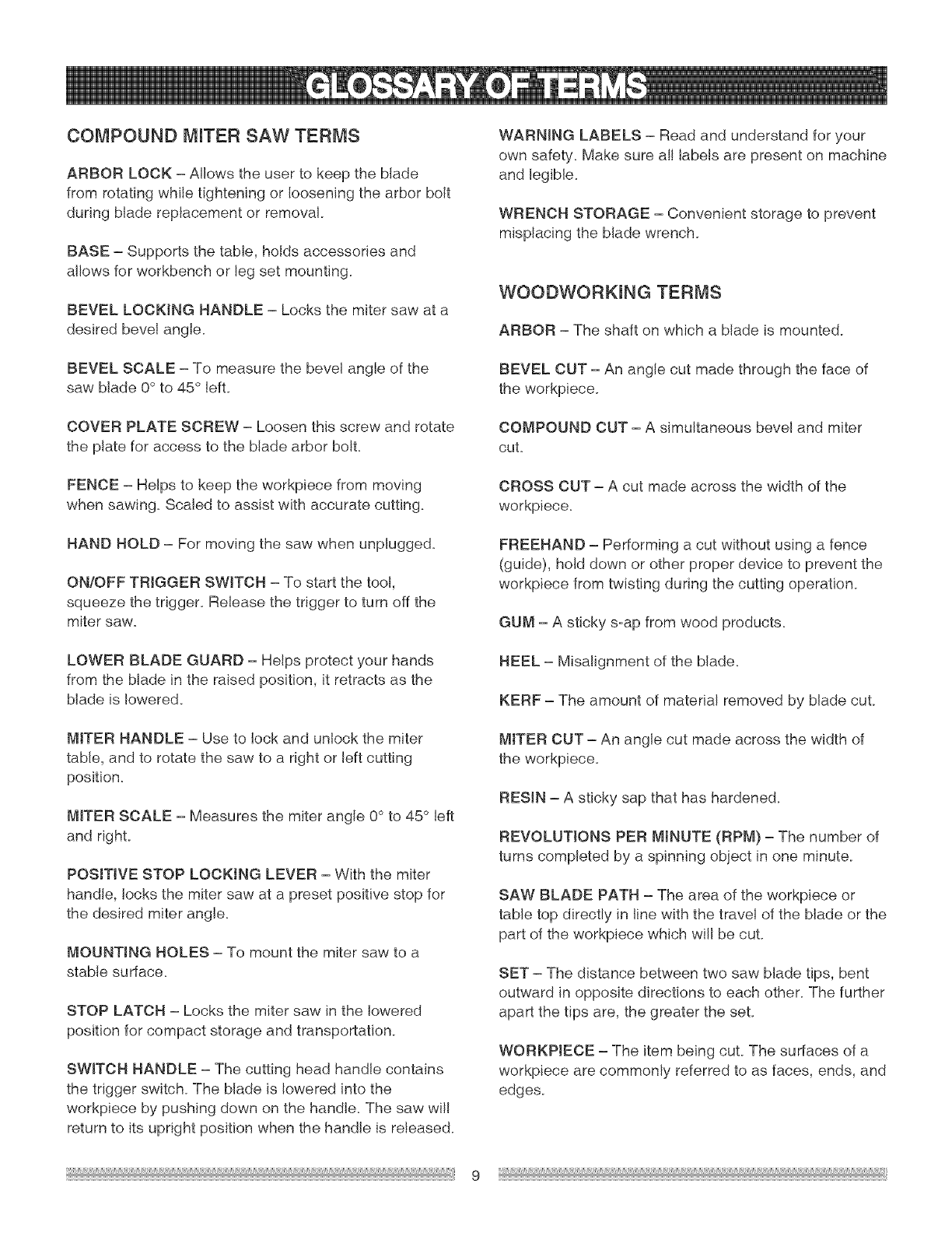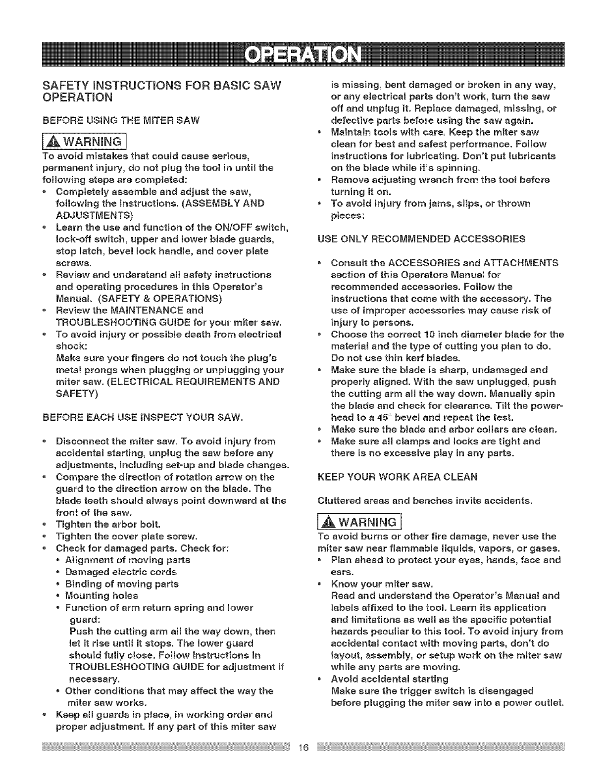 CRAFTSMAN Miter Saw Manual L0511161 CRAFTSMAN Miter Saw Owner's Manual, CRAFTSMAN Miter Saw installation guides
