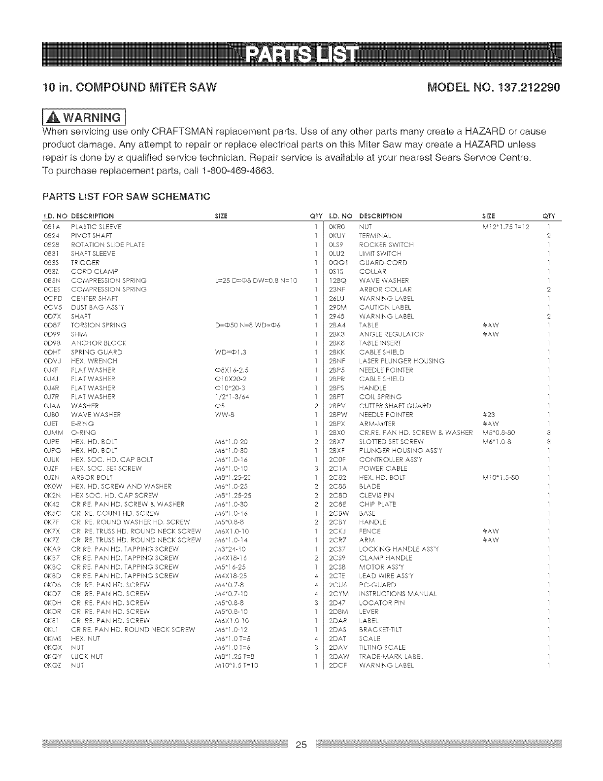 137212290 137212290 CRAFTSMAN MITER SAW - Manuals and Guides L0511161 View the owners manual for your CRAFTSMAN MITER SAW #137212290. Home:Tool Parts:Craftsman Parts:Craftsman MITER SAW Manual