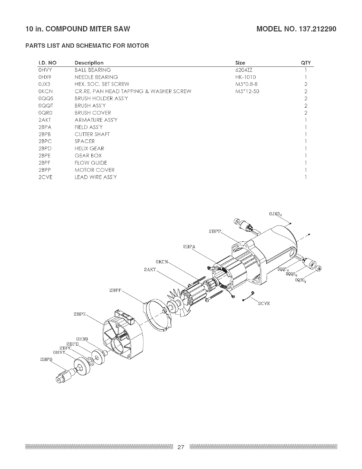 PARTS LIST AND SCHEB_IATtC FOR MOTOR