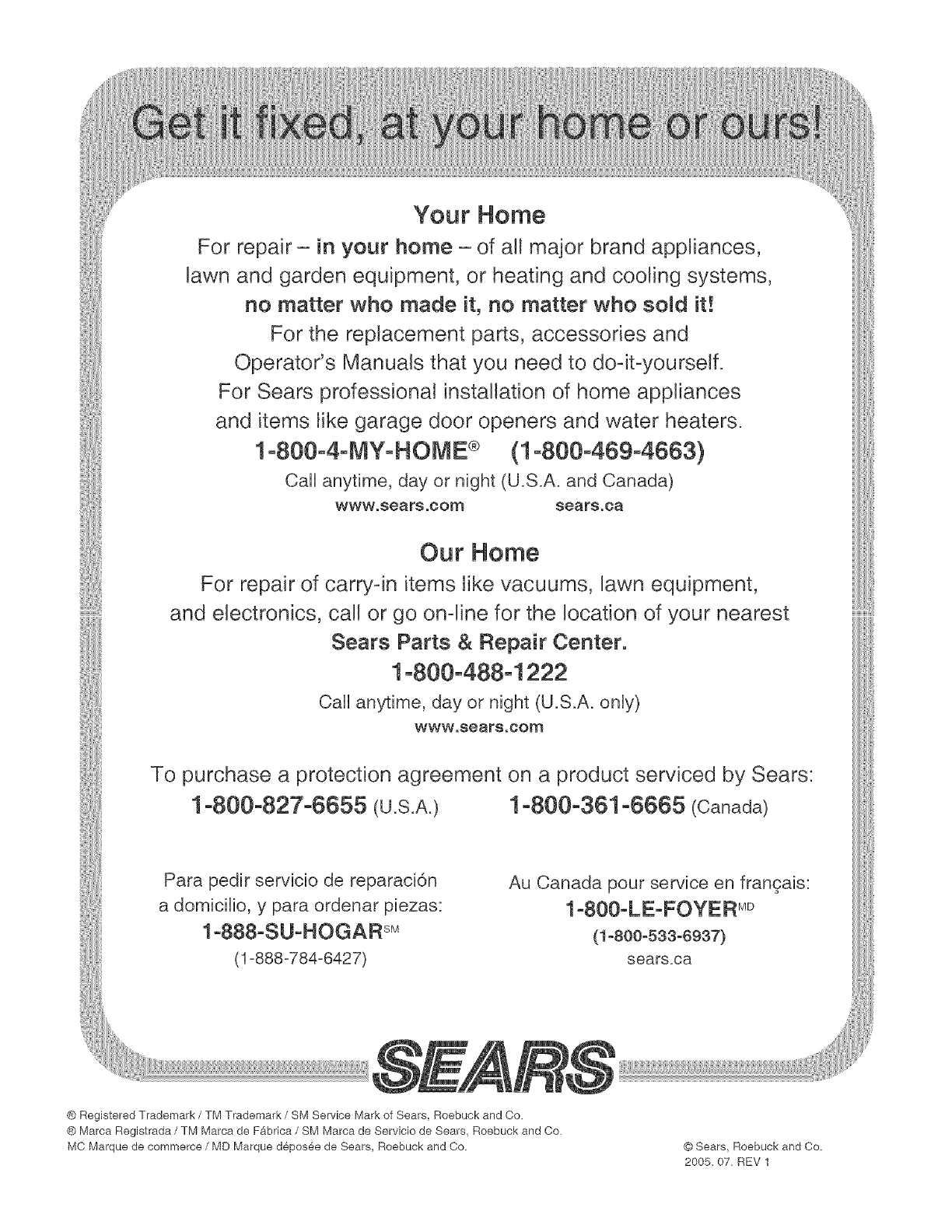 ® Registered Trademark /TM Trademark /SM Service Mark of Sears, Roebuck and Co.