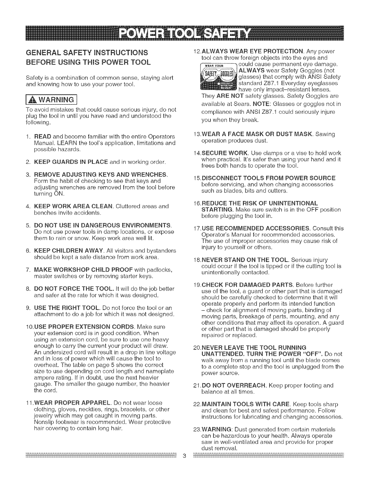damaged in any way. Before using your too!, it is critical that you read and understand these safety rules.