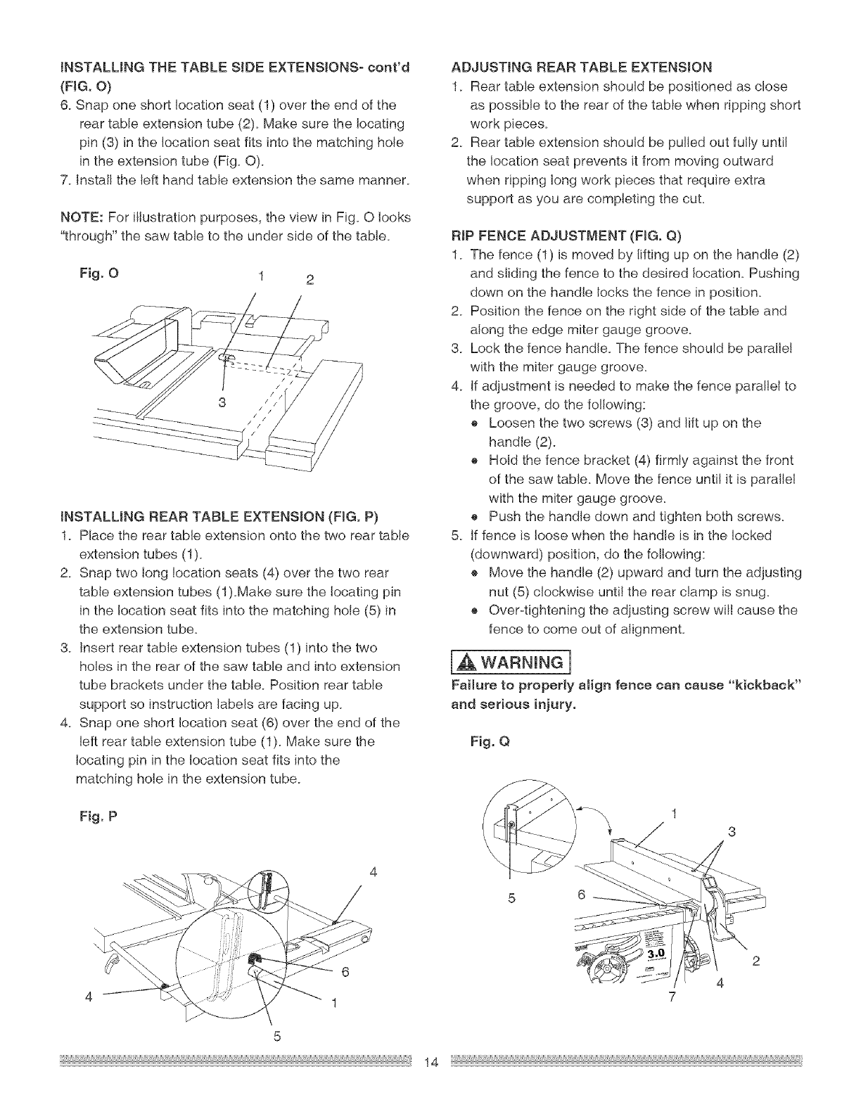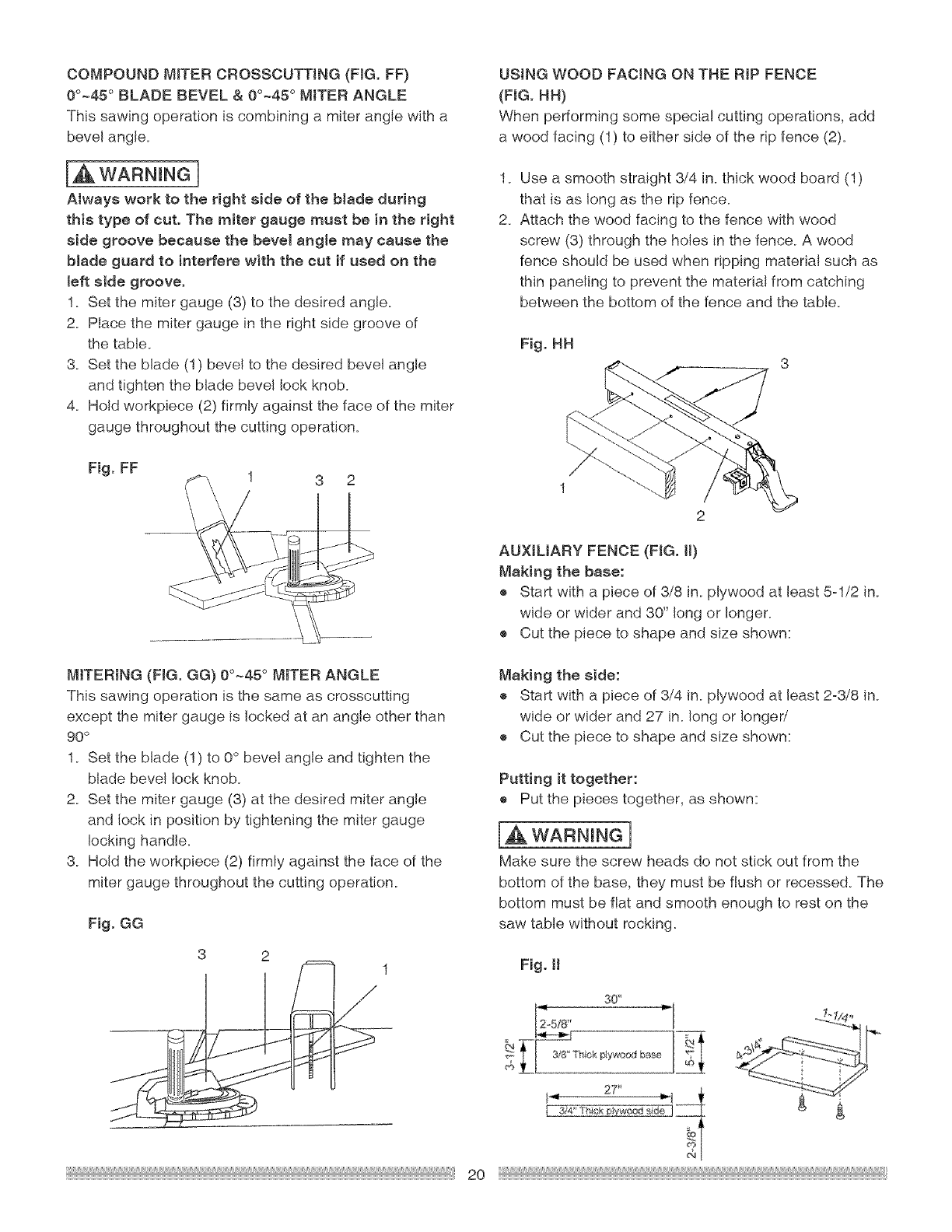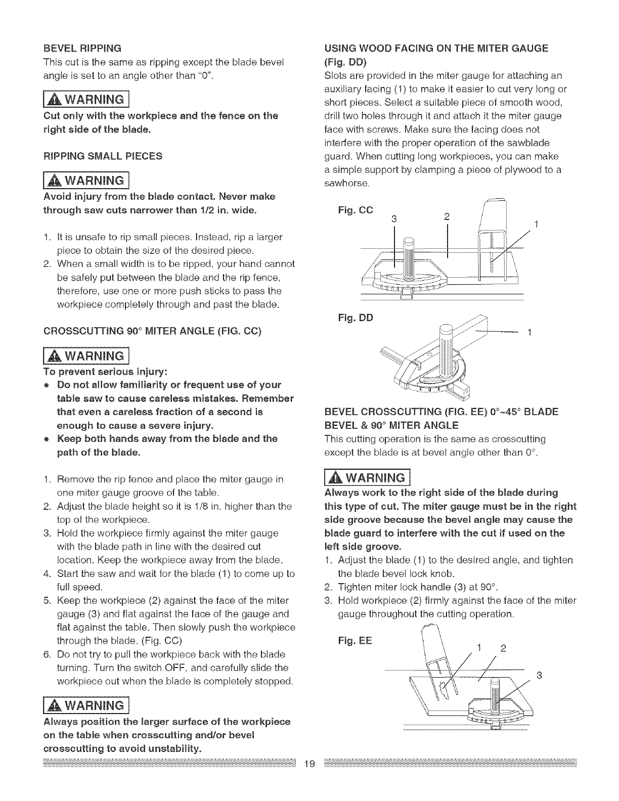 these rules couJd result in serious injury or damage to the table saw.