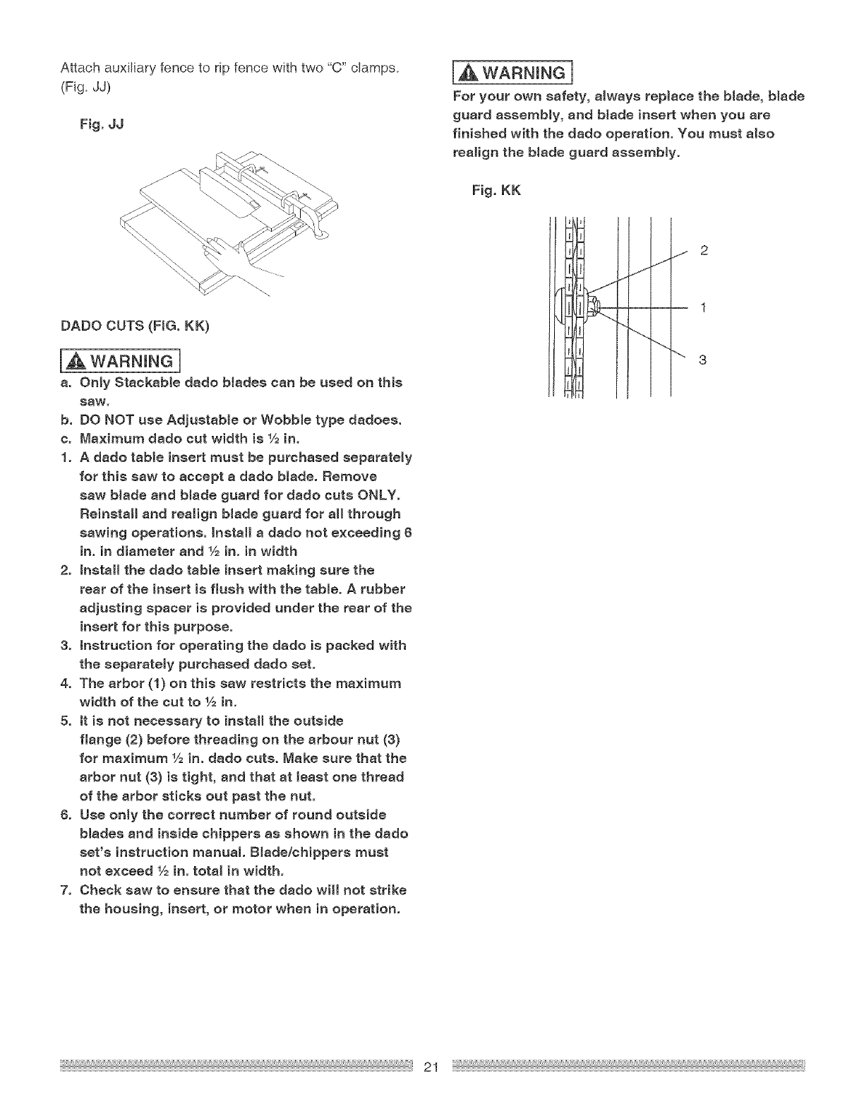 Maximum Dado Cut Width ............. 1/2 in.