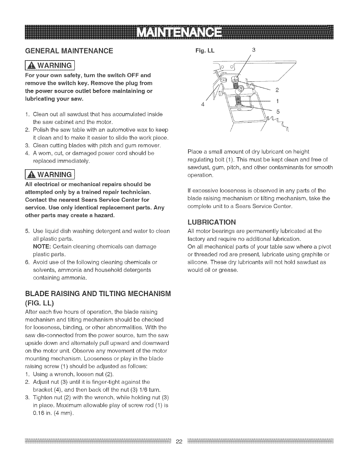 Maintenance ....................................................... 22