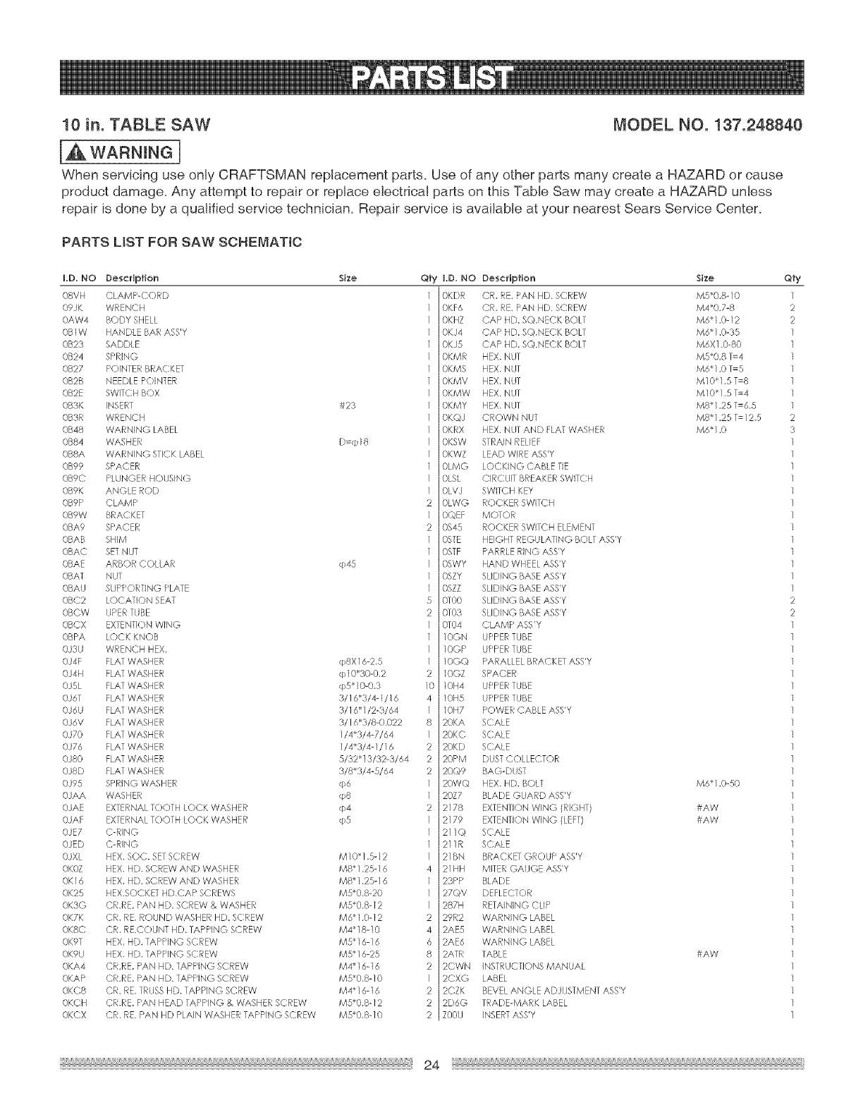 137248840 137248840 CRAFTSMAN TABLE SAW - Manuals and Guides L0511163 View the owners manual for your CRAFTSMAN TABLE SAW #137248840. Home:Tool Parts:Craftsman Parts:Craftsman TABLE SAW Manual