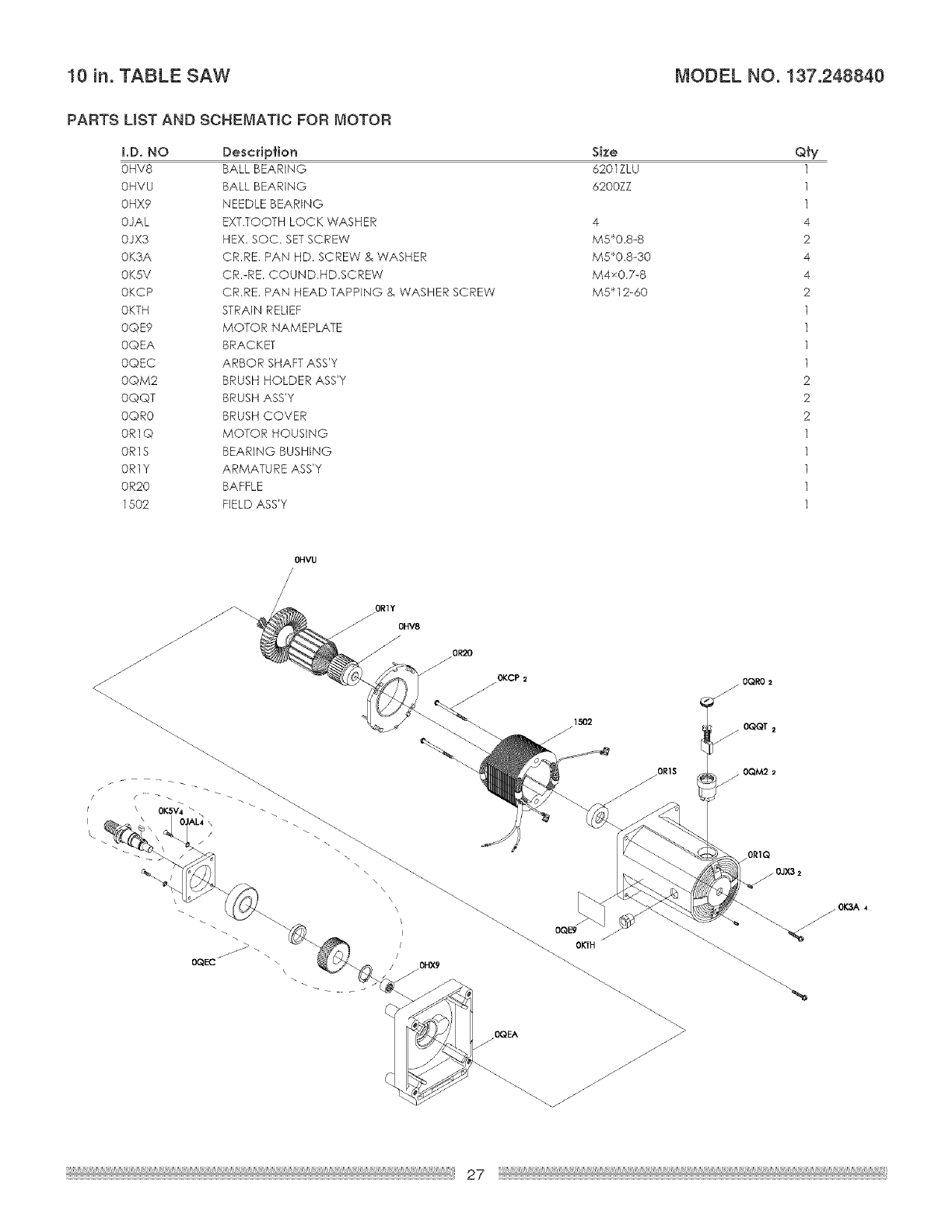 PARTS LIST AND SCHEMATIC FOR MOTOR