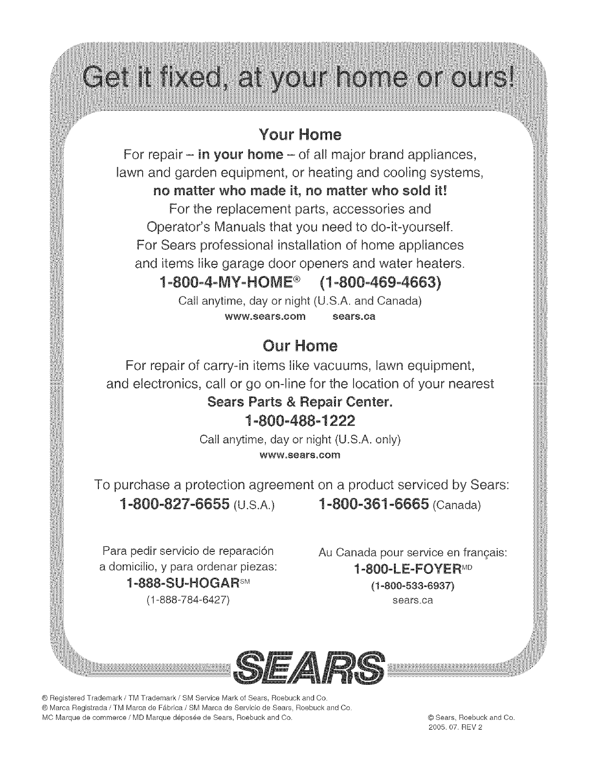 ® Registered Trademark /TM Trademark /SM Service Mark of Sears, Roebuck and Co.