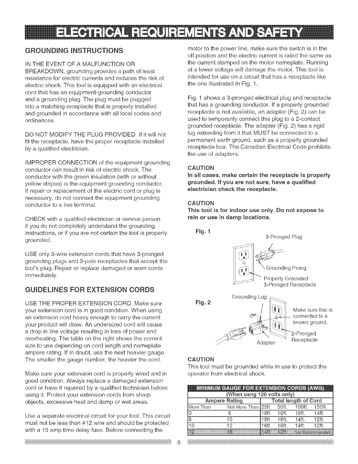 To evoid electricel hezerds, fire hezerds or demege to the toot, uce proper circuit protection.