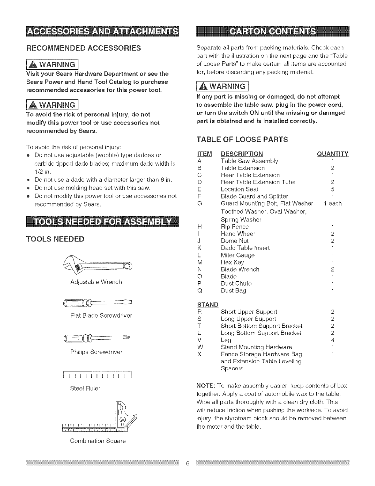 CRAFTSMAN Saw Table Manual L0511163 CRAFTSMAN Saw Table Owner's Manual, CRAFTSMAN Saw Table installation guides