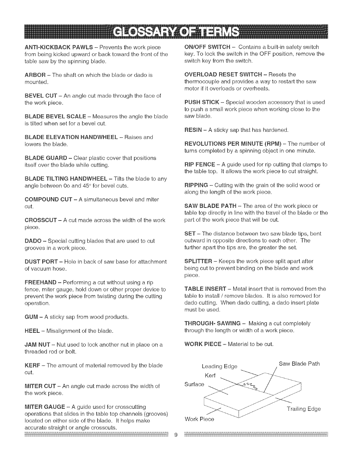 Know Your Table Saw ........................................ 8