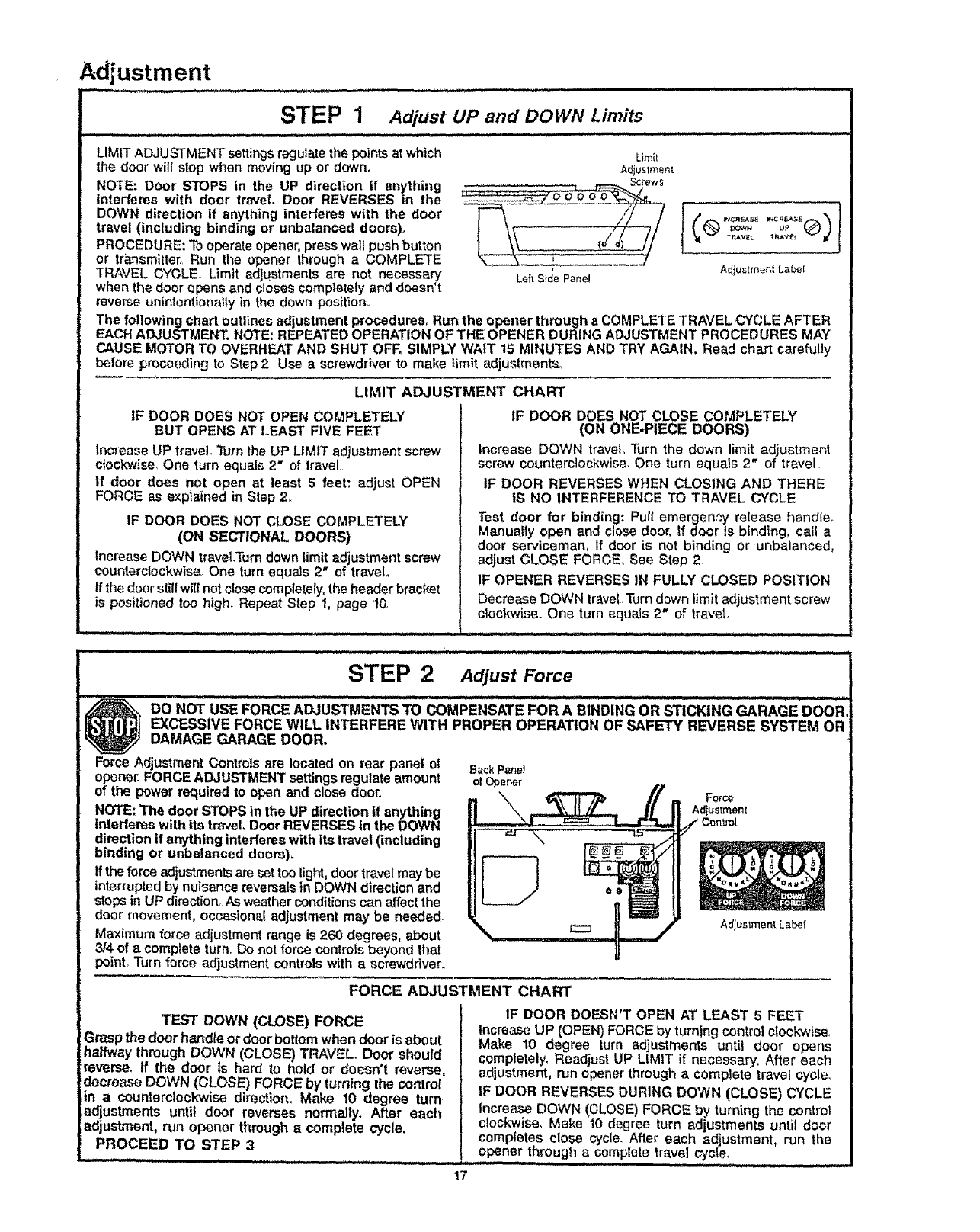 4. If door reverses in FULLY CLOSED position, decrease trave{ limits (see page 17)