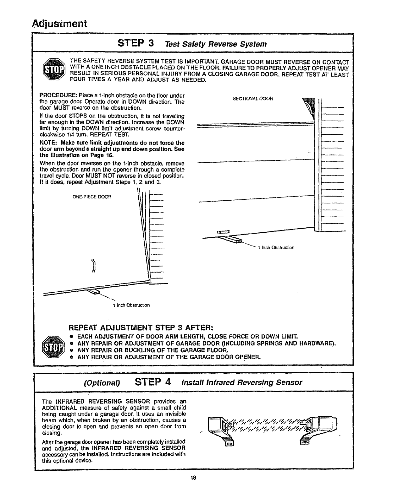 REPEAT SAFETY REVERSE TEST after adjustment is complete.