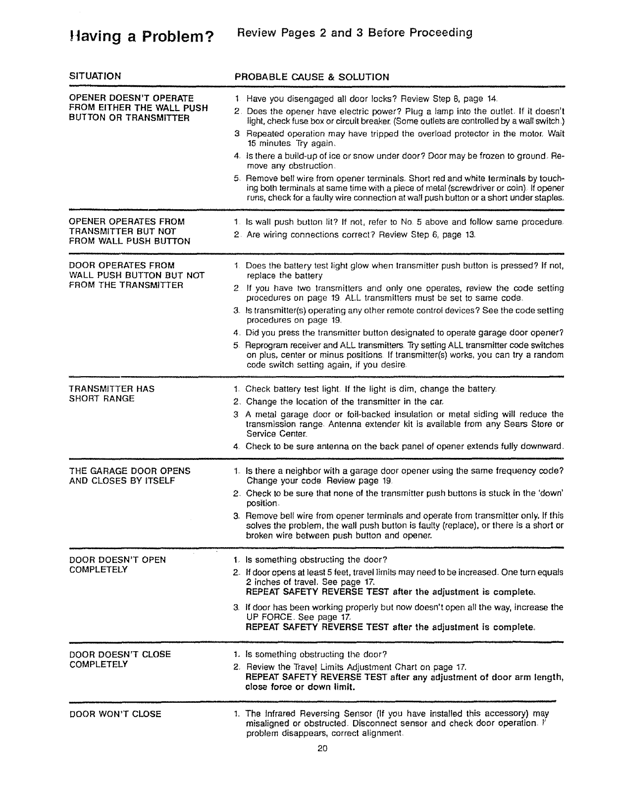3 If the problem occurs on first operation of the opener, door is locked DISABLE