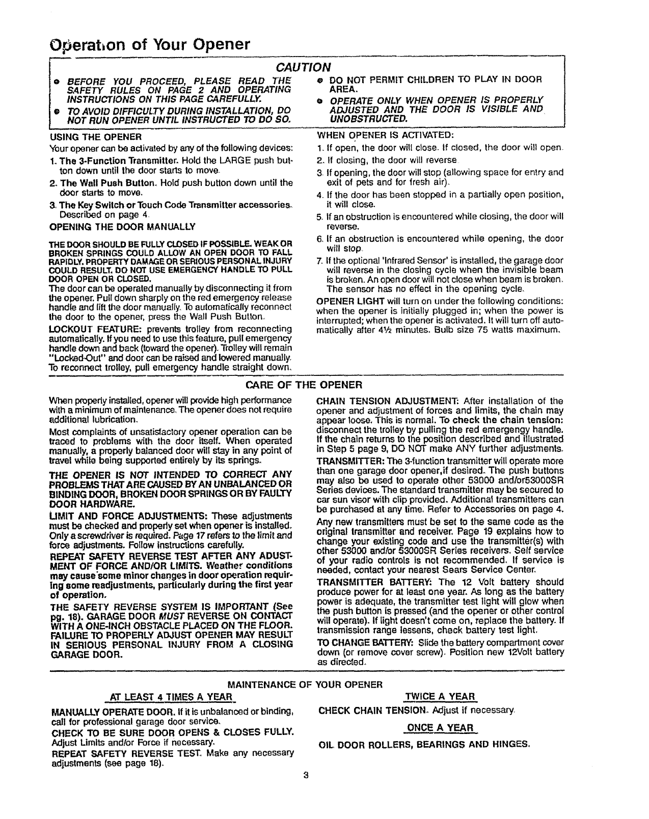 CAUTION: IF YOUR GARAGE HAS NO SERVICE ENTRANCE DOOR, INSTALL MODEL 53702 EMERGENCY RELEASE