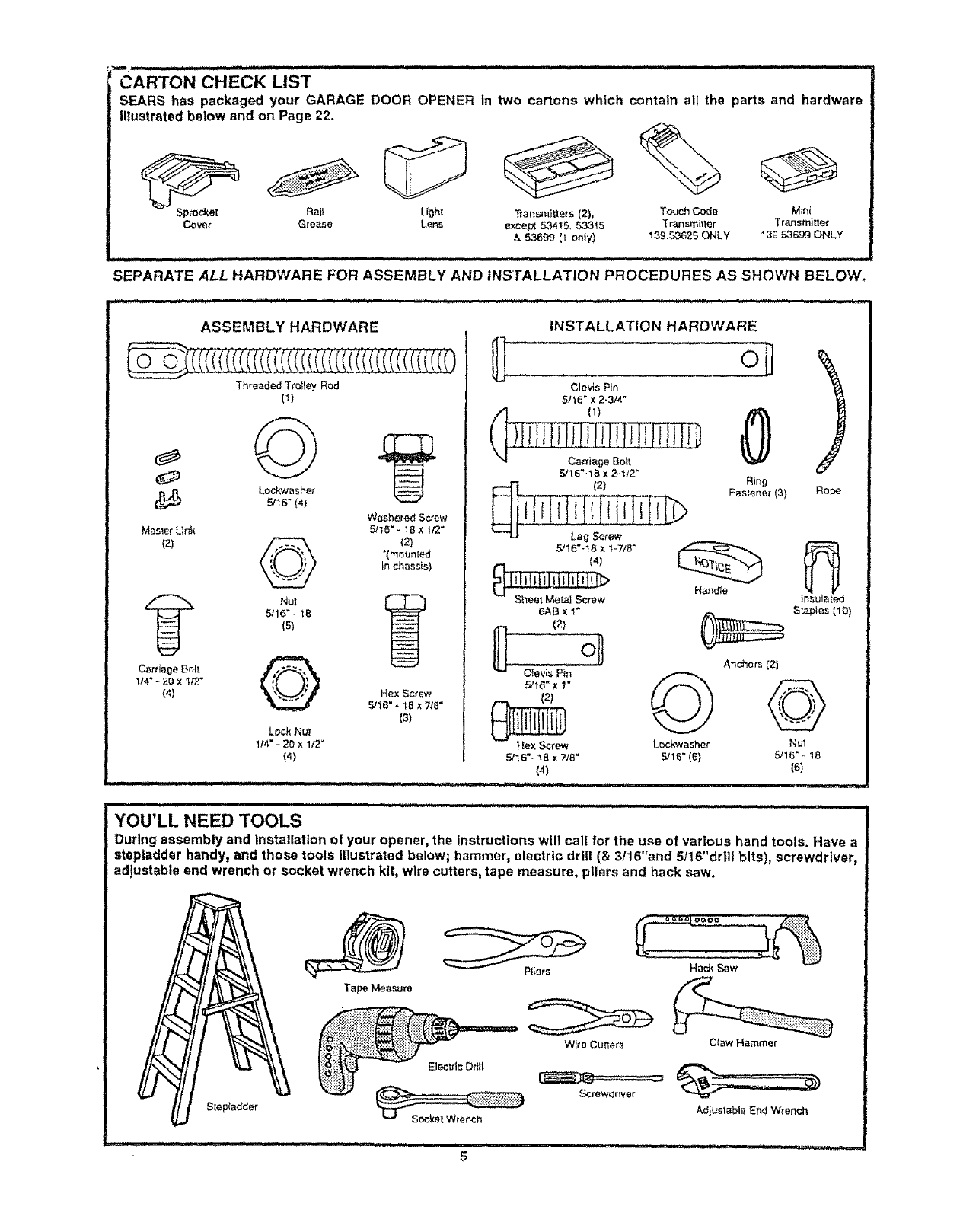13953315SR 13953315SR CRAFTSMAN SEARS ELECTRONIC GARAGE DOOR OPENER - Manuals and Guides L0706367 View the owners manual for your CRAFTSMAN SEARS ELECTRONIC GARAGE DOOR OPENER #13953315SR. Home:Garage Door & Opener Parts:Craftsman Parts:Craftsman SEARS ELECTRONIC GARAGE DOOR OPENER Manual